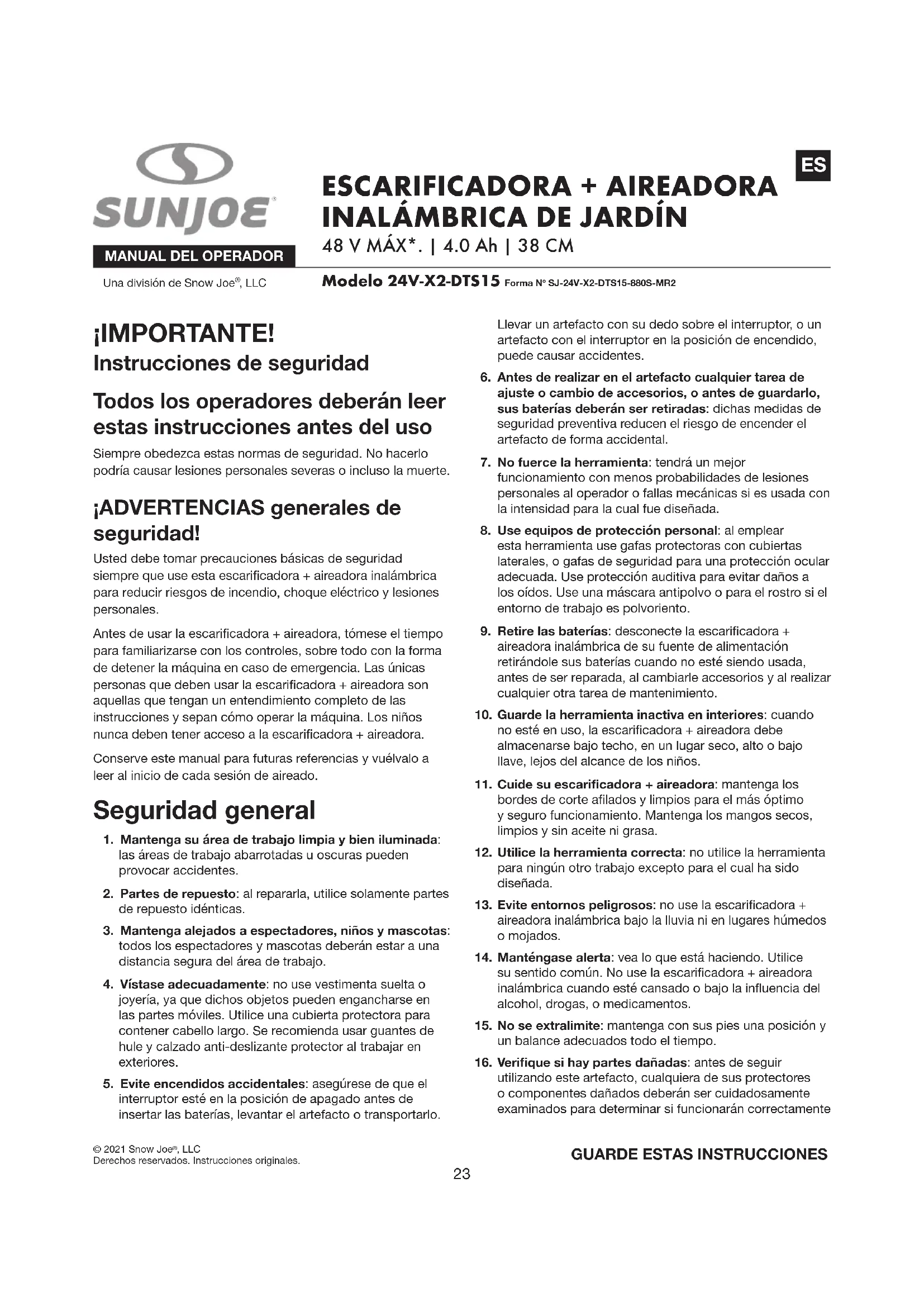 MANUAL DE USUARIO 24VX2DTS15CT Sun Joe