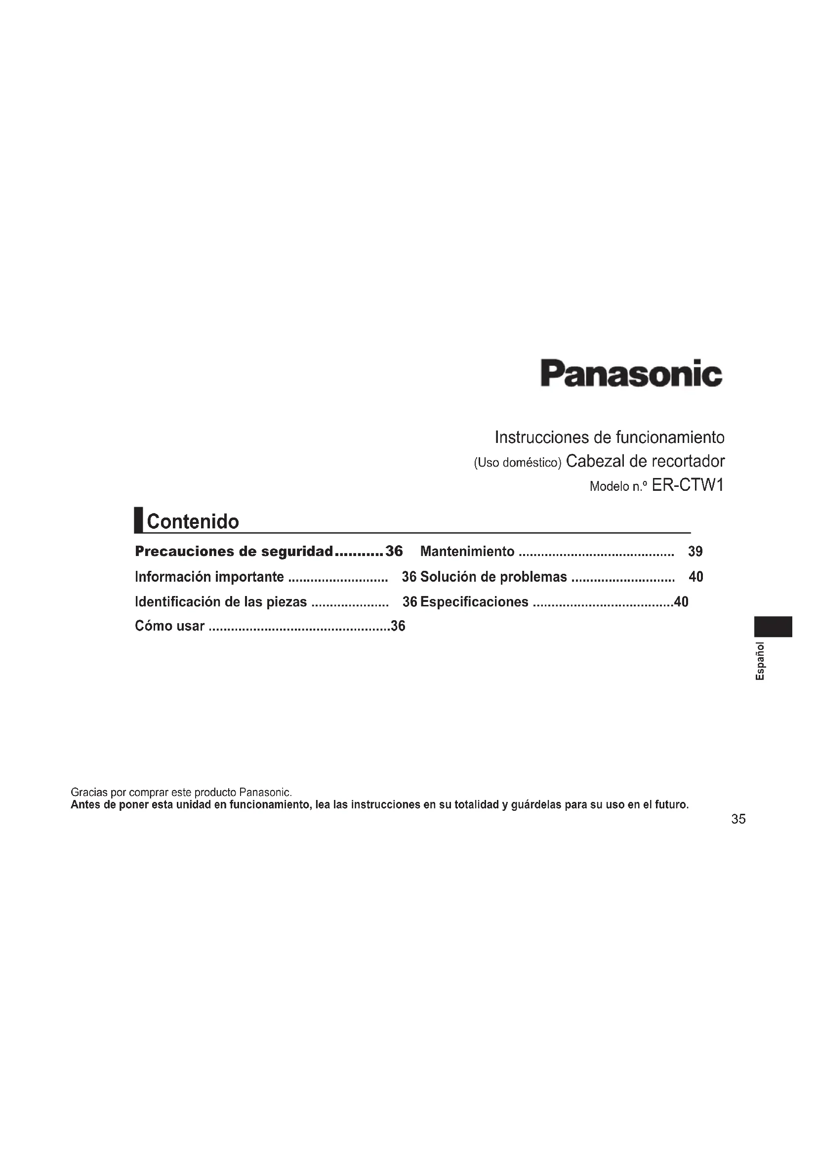 ERCTW1 - Recortador de barba PANASONIC - Manual de uso y guía de instrucciones gratis