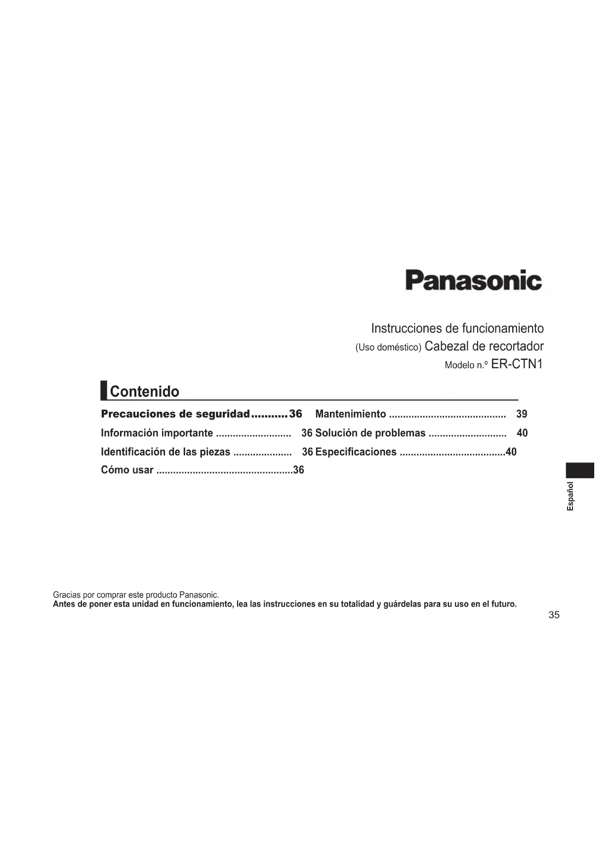Encuentra gratis el manual del aparato ERCTN1 PANASONIC en formato PDF.