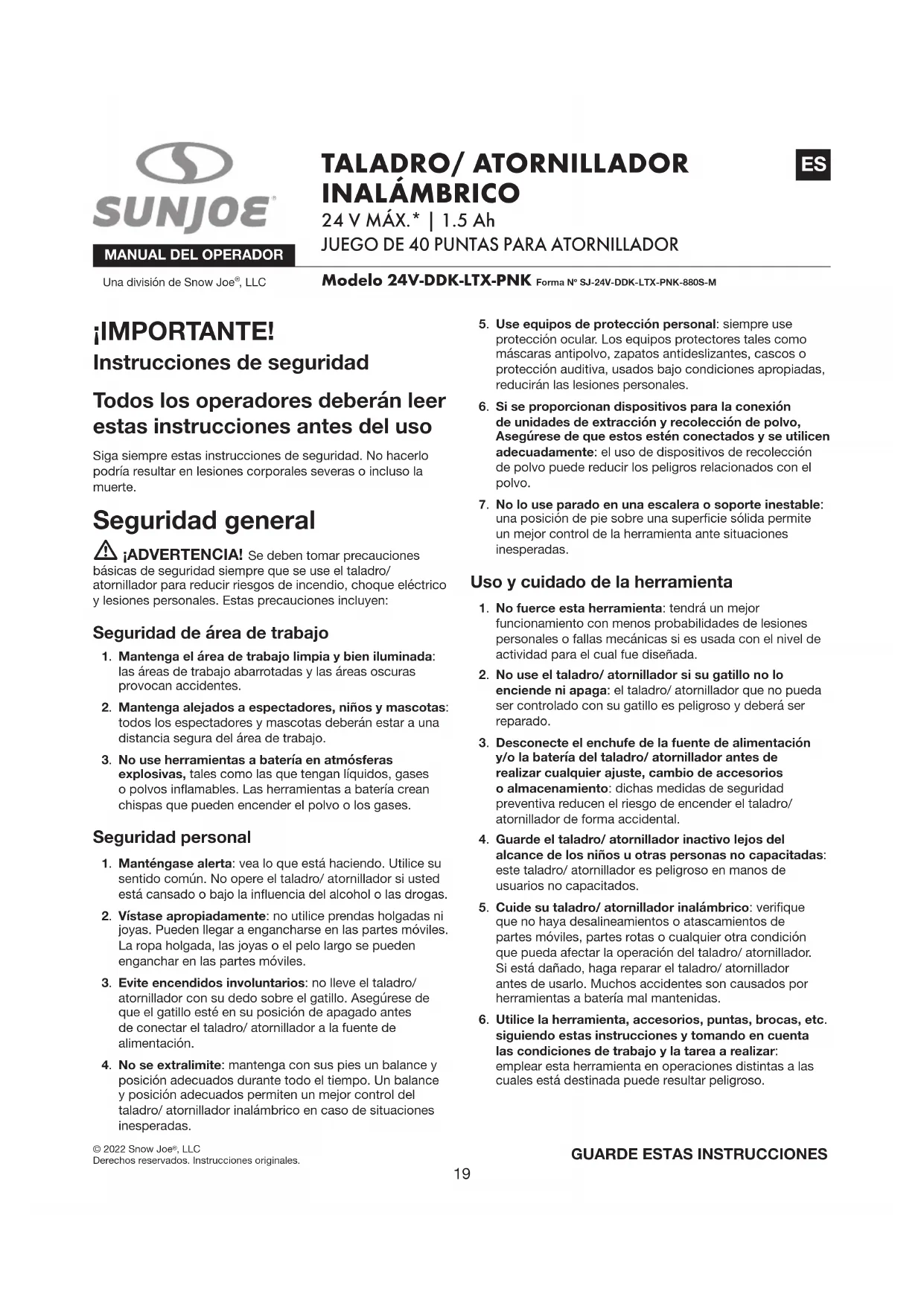 MANUAL DE USUARIO 24VDDKLTXPNK Sun Joe