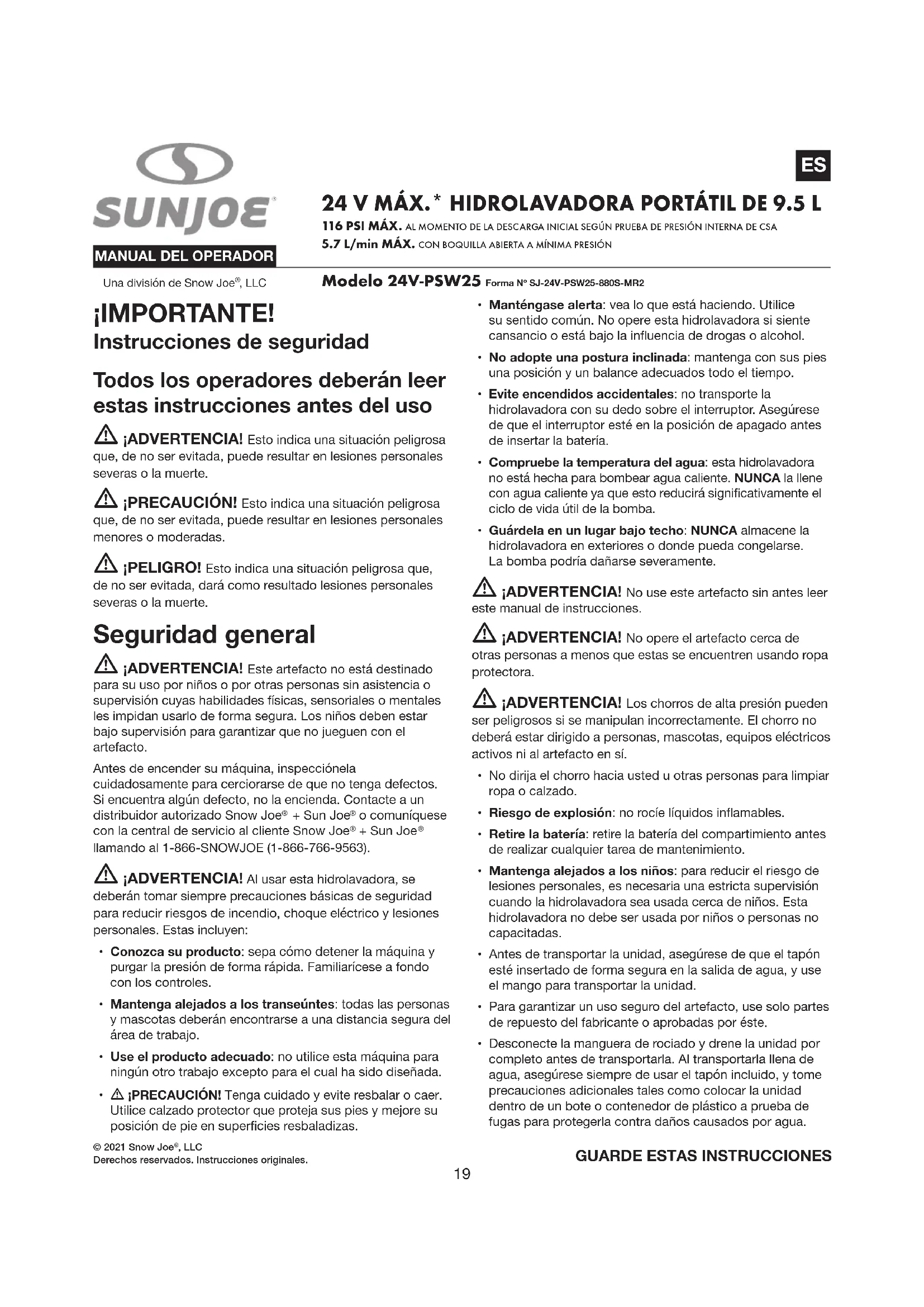 MANUAL DE USUARIO 24VPSW25 Sun Joe