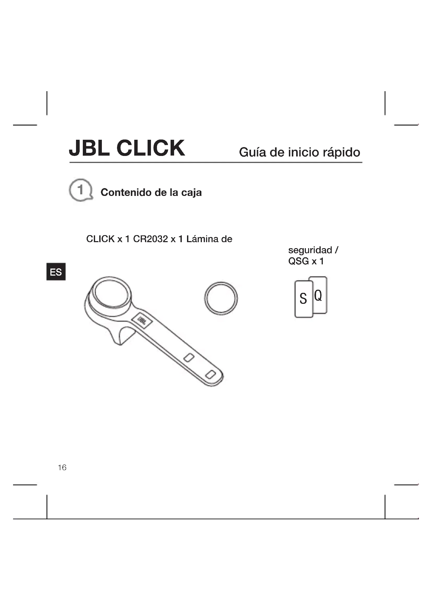 CLICK x 1 CR2032 x 1 Lámina de seguridad / QSG x 1JBL CLICK Guía de inicio rápido