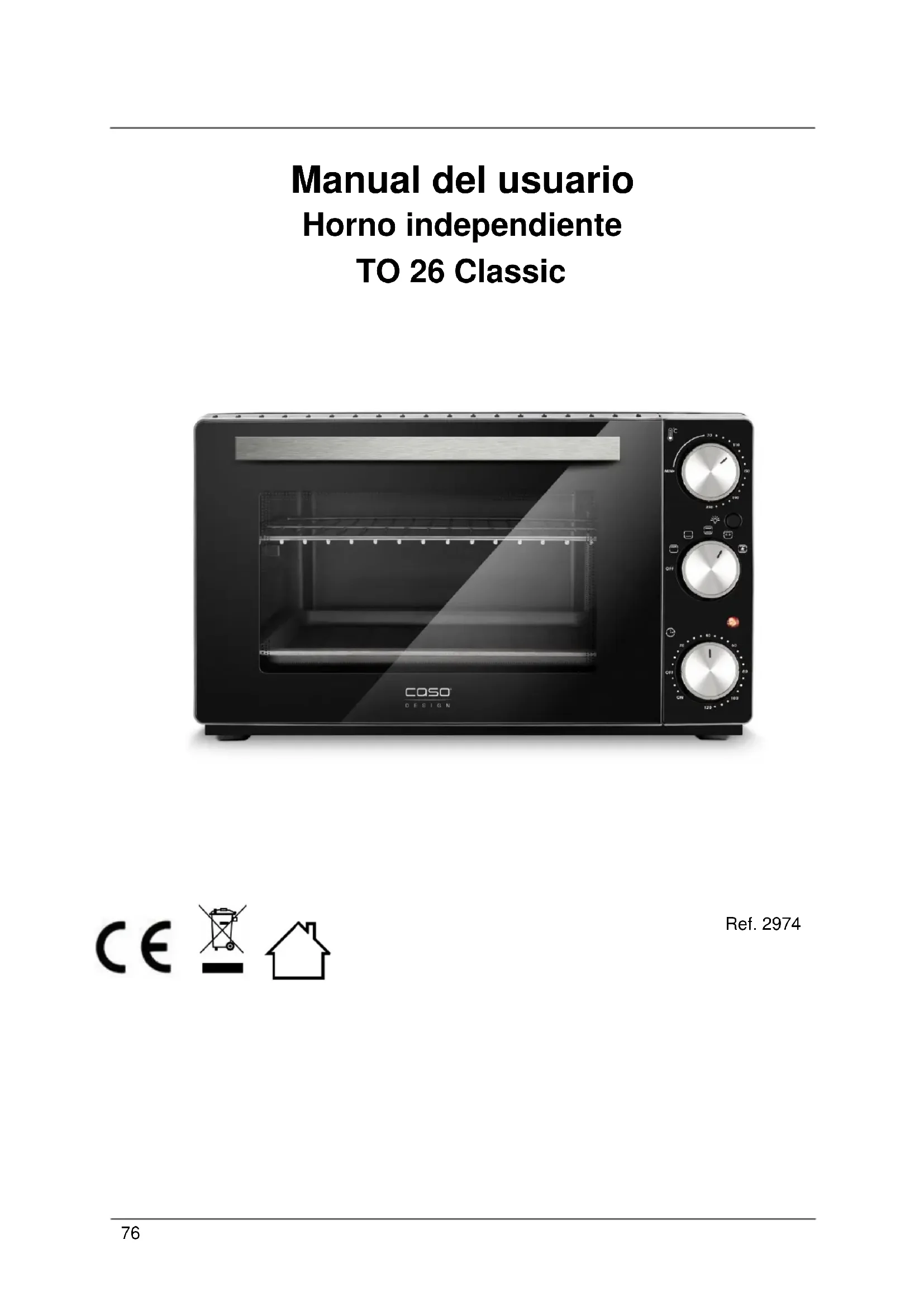 Encuentra gratis el manual del aparato TO 26 Classic CASO en formato PDF.