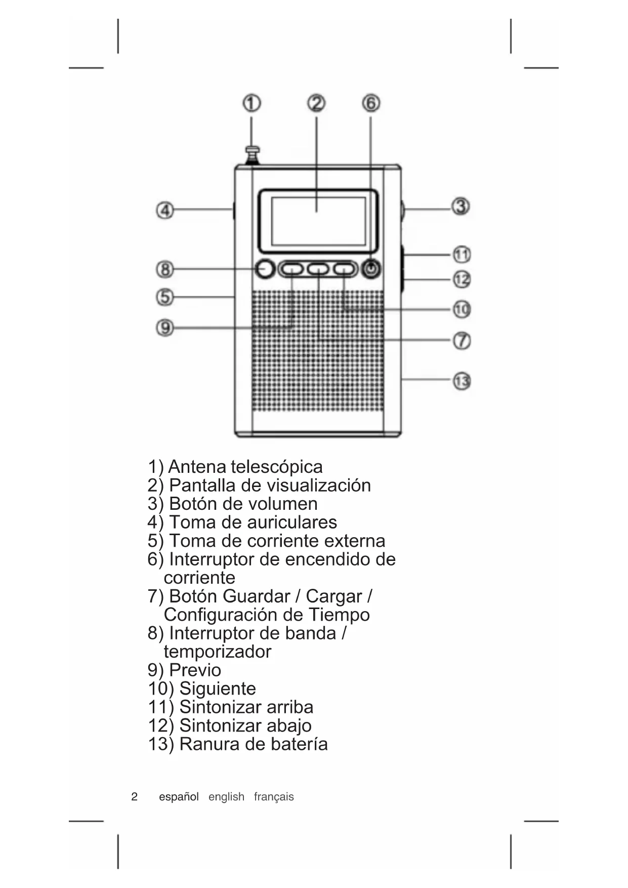 la antena de varilla, puede lograr una mejor recepción cambiando la longitud y dirección de la antena.7 español english français