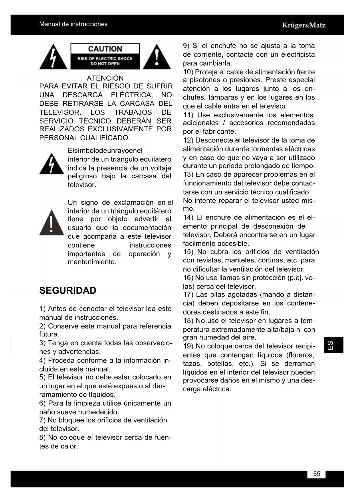 KM0255UHD - TELEVISOR Krüger&Matz - Manual de uso y guía de instrucciones gratis