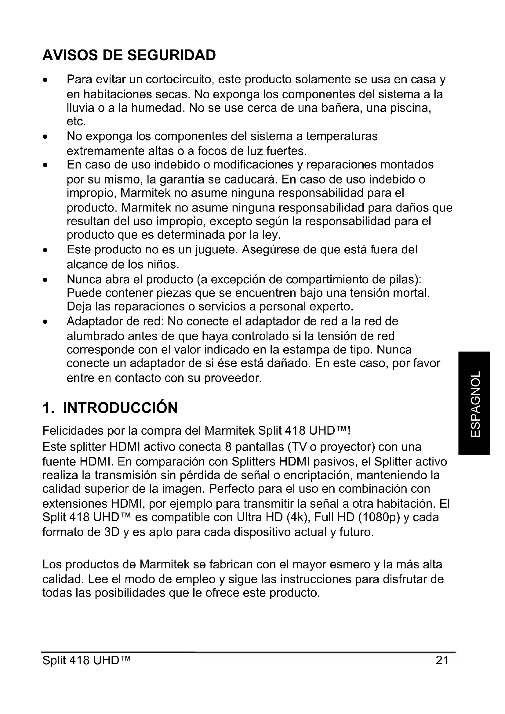 MANUAL DE USUARIO Split 418 UHD MARMITEK