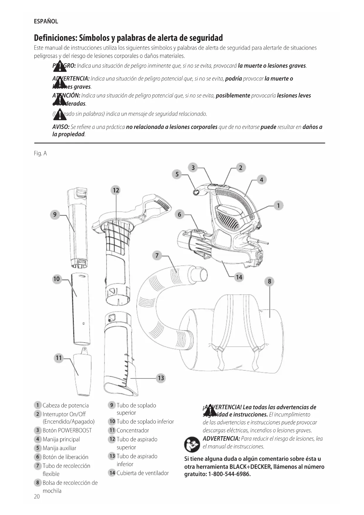 ADVERTENCIAS: Si sus etiquetas de advertencia se vuelven ilegibles o faltan, llame al 1-800-544-6986 para que se le reemplacengratuitamente. Importado por Black & Decker (U.S.) Inc., 701 E. Joppa Rd. Towson, MD 21286 BlackandDecker.com 1-800-544-6986