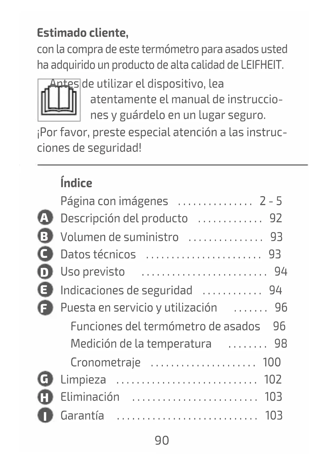 - Indicaciones de seguridad p. 94