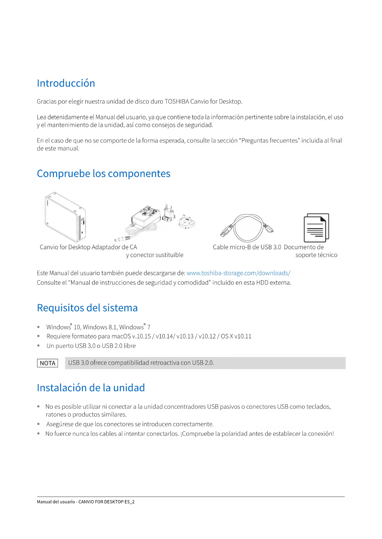 HDWC340EK3JB - Disco duro externo TOSHIBA - Manual de uso y guía de instrucciones gratis
