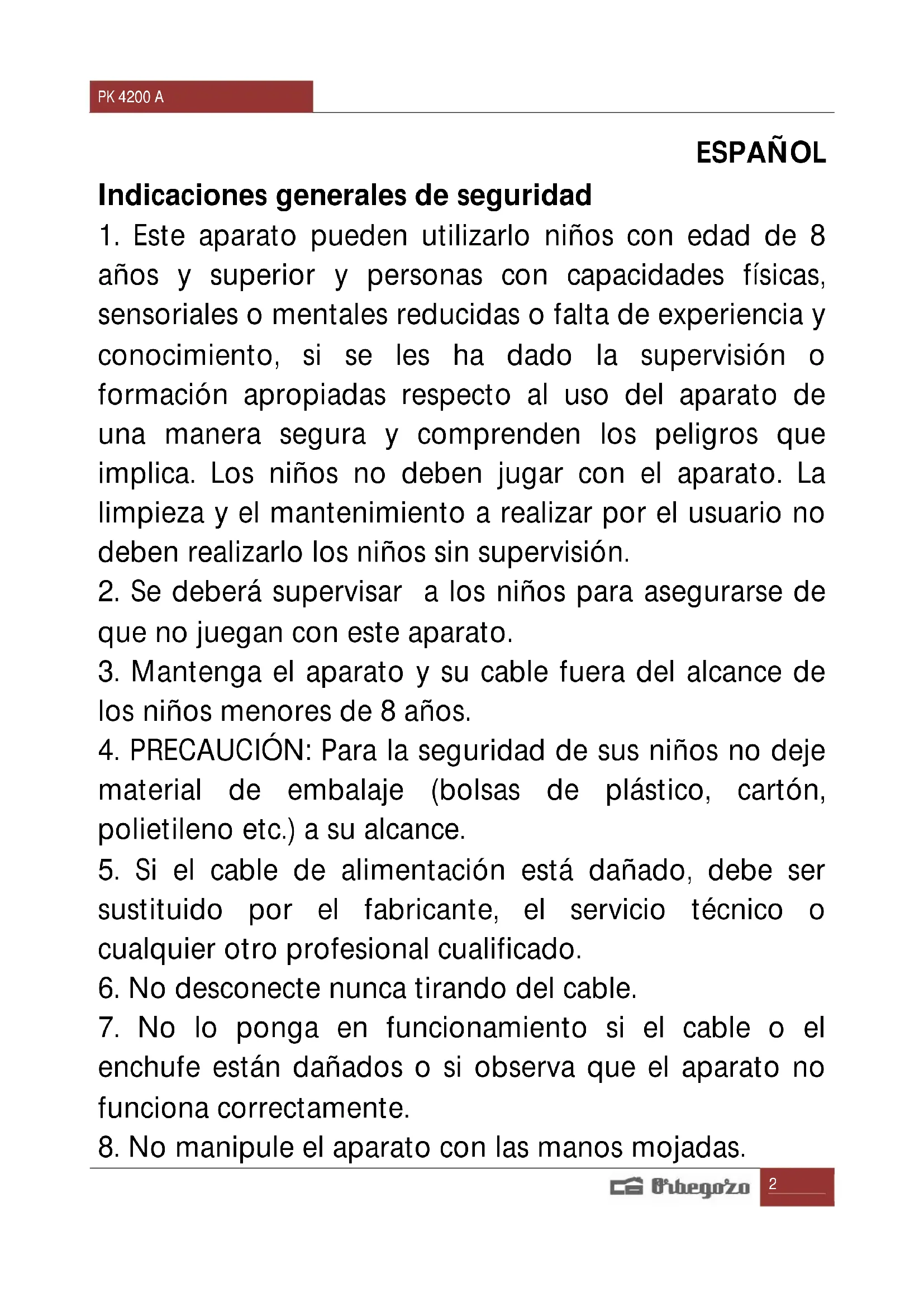 MANUAL DE USUARIO PK 4200 Orbegozo