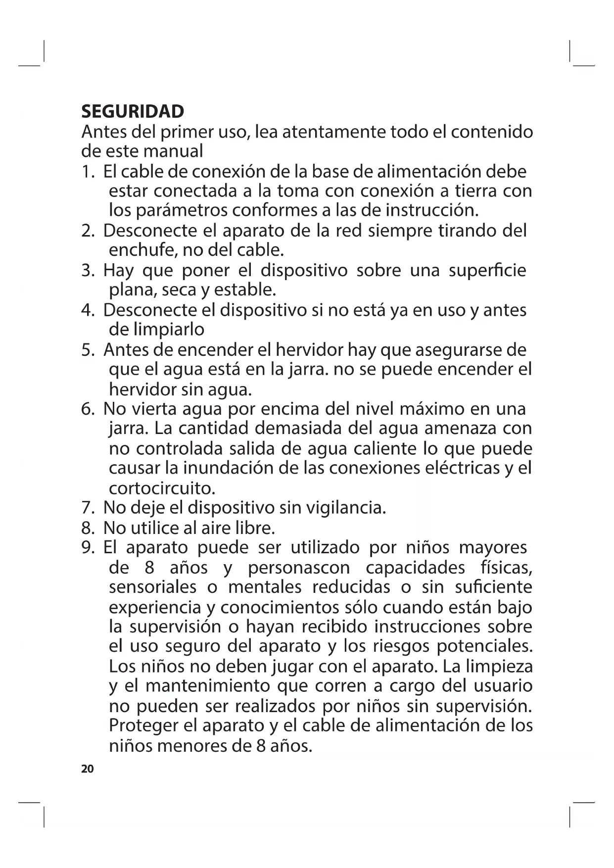 9. El aparato puede ser utilizado por niños mayores