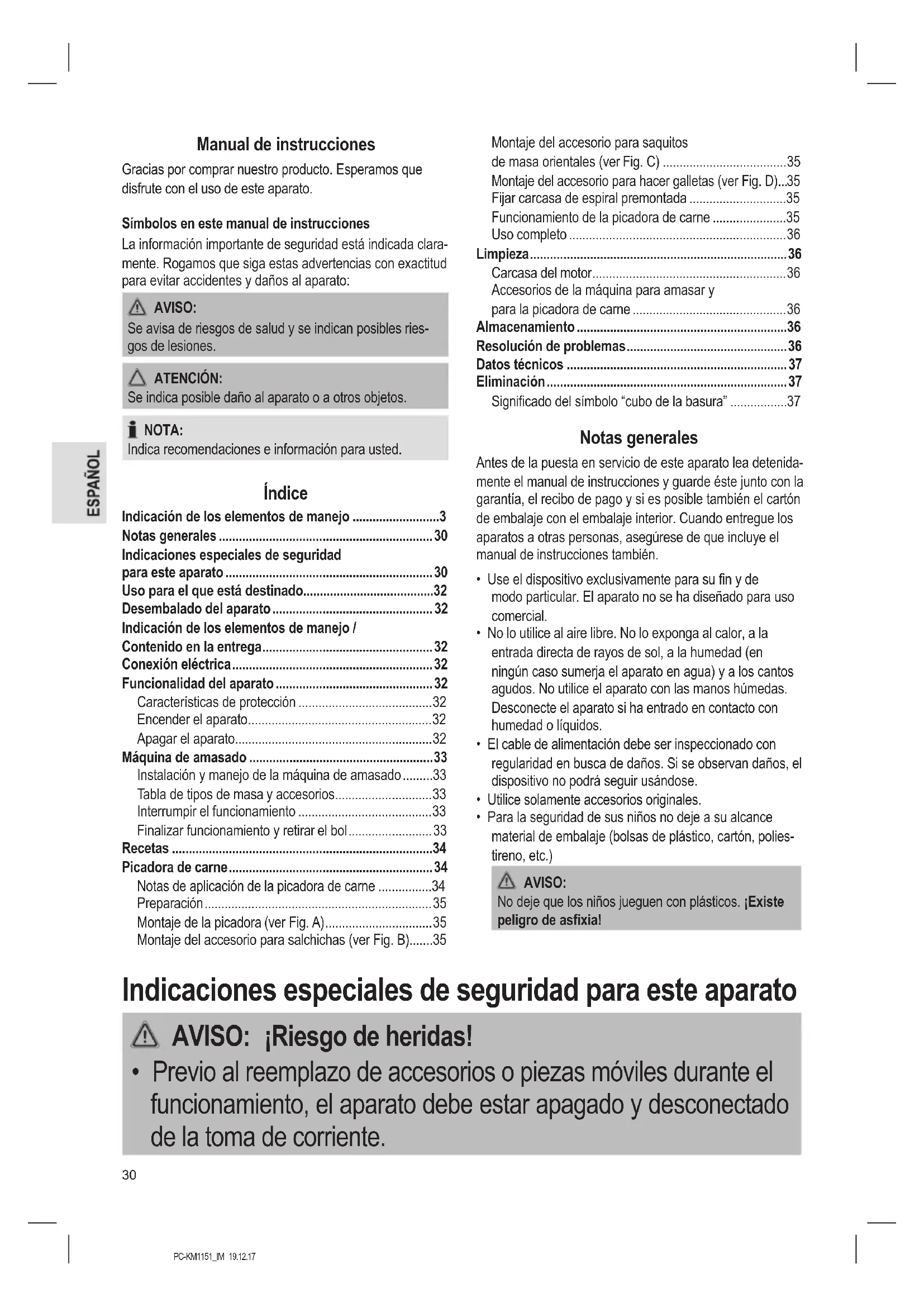 Indicaciones especiales de seguridad para este aparato 30