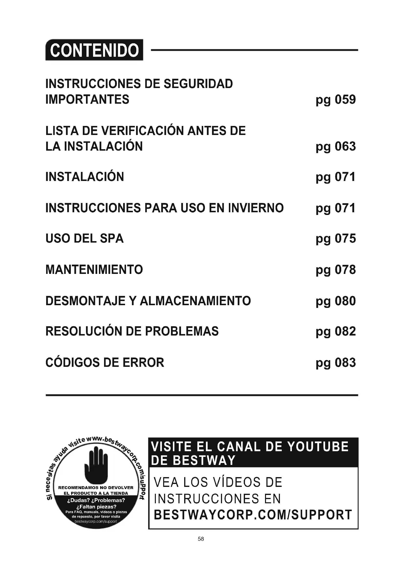 necesario.Para recibir asistencia, visite la sección de soporte de nuestro sitio web: www.bestwaycorp.com.