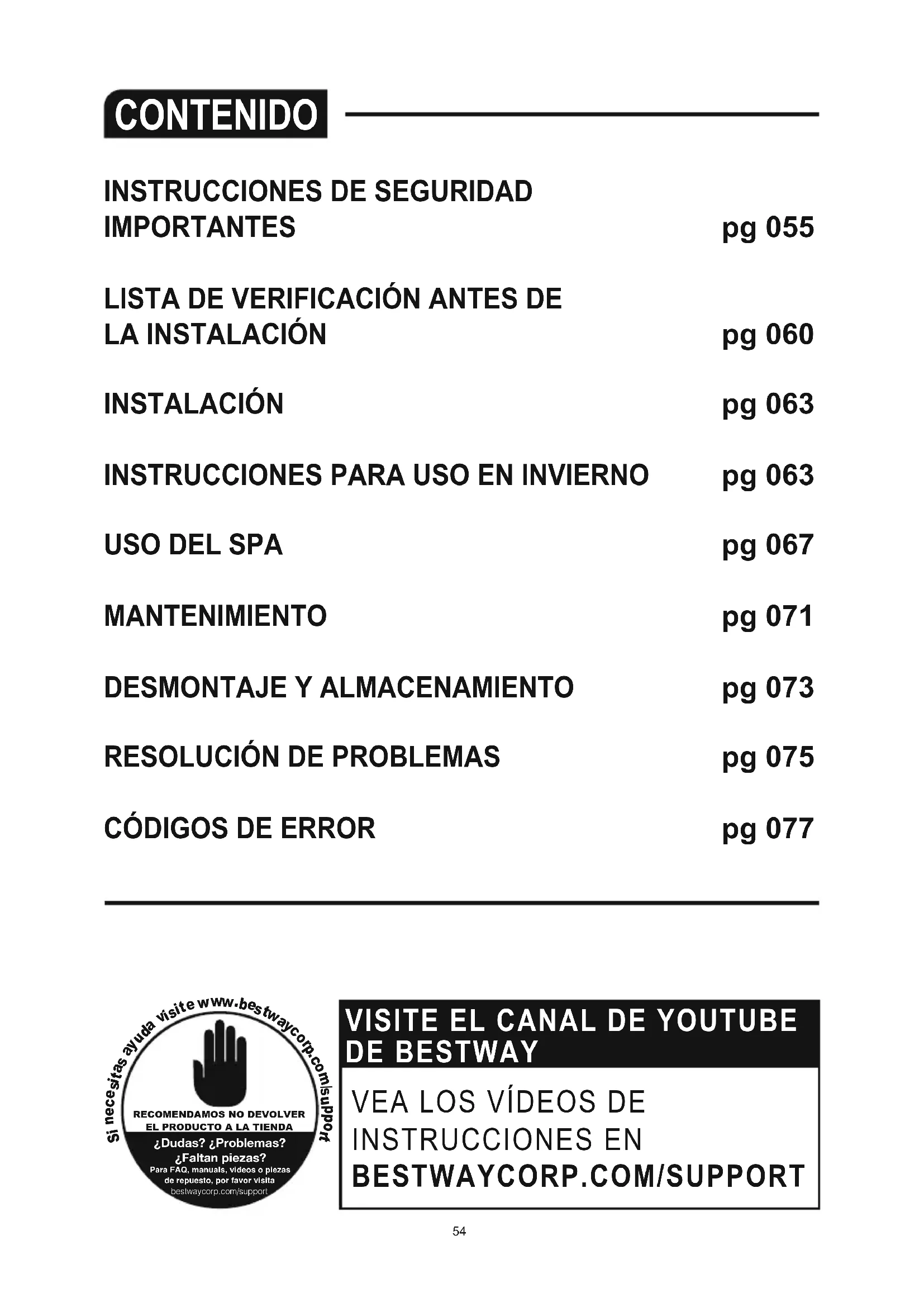 necesario.Para recibir asistencia, visite la sección de soporte de nuestro sitio web: www.bestwaycorp.com.