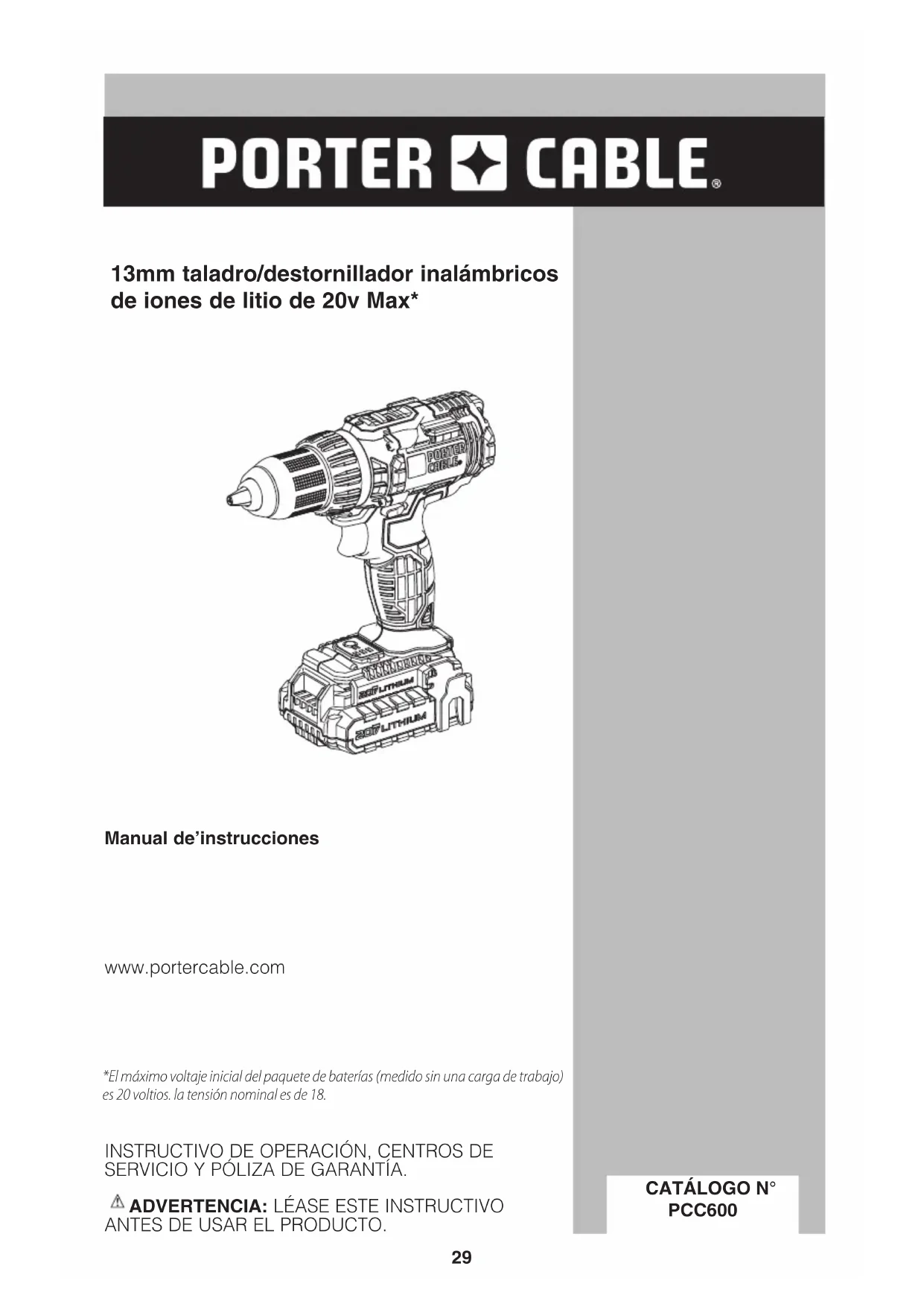 MANUAL DE USUARIO PCCK600 Porter-Cable