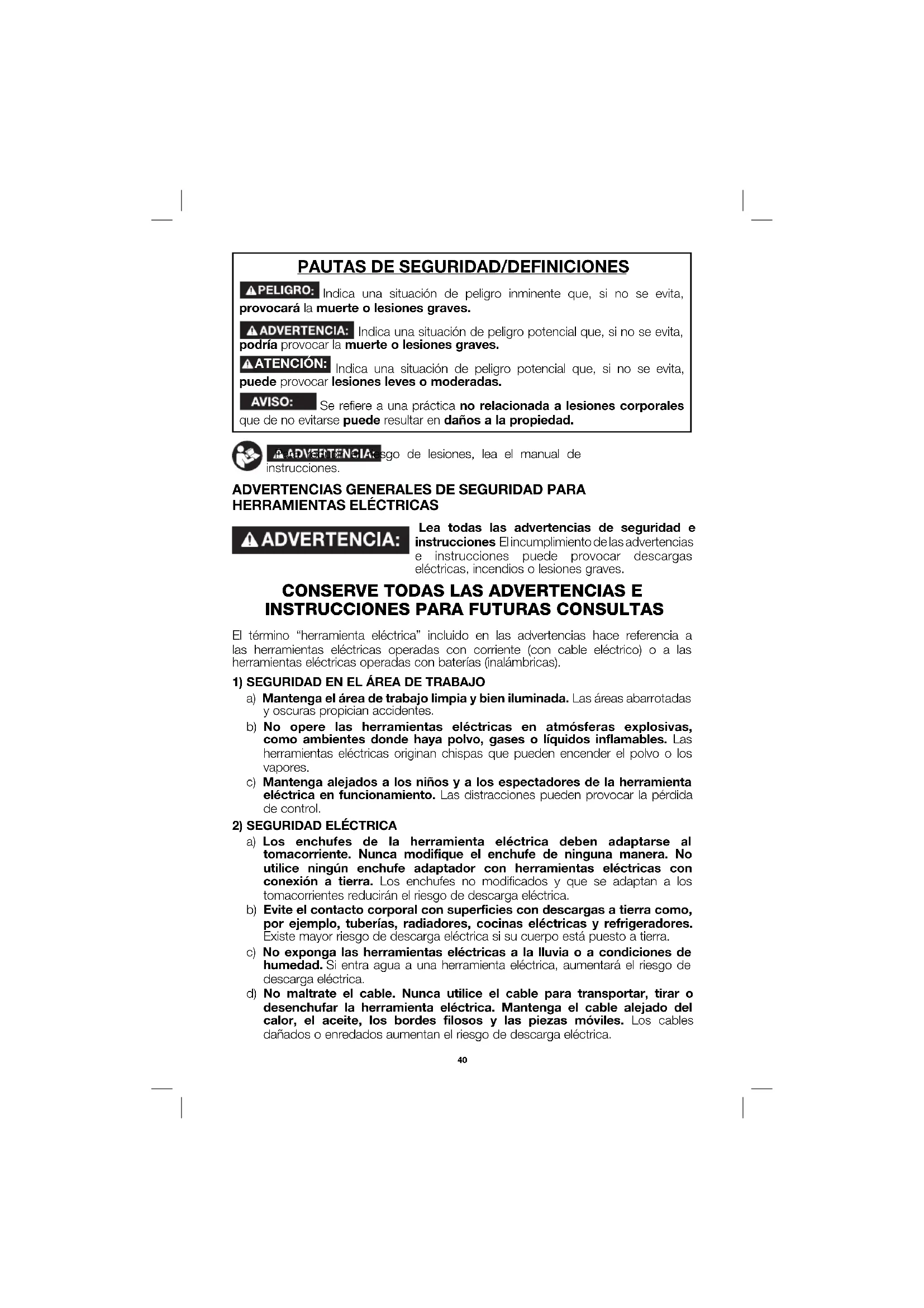 El término “herramienta eléctrica” incluido en las advertencias hace referencia a las herramientas eléctricas operadas con corriente (con cable eléctrico) o a las herramientas eléctricas operadas con baterías (inalámbricas).