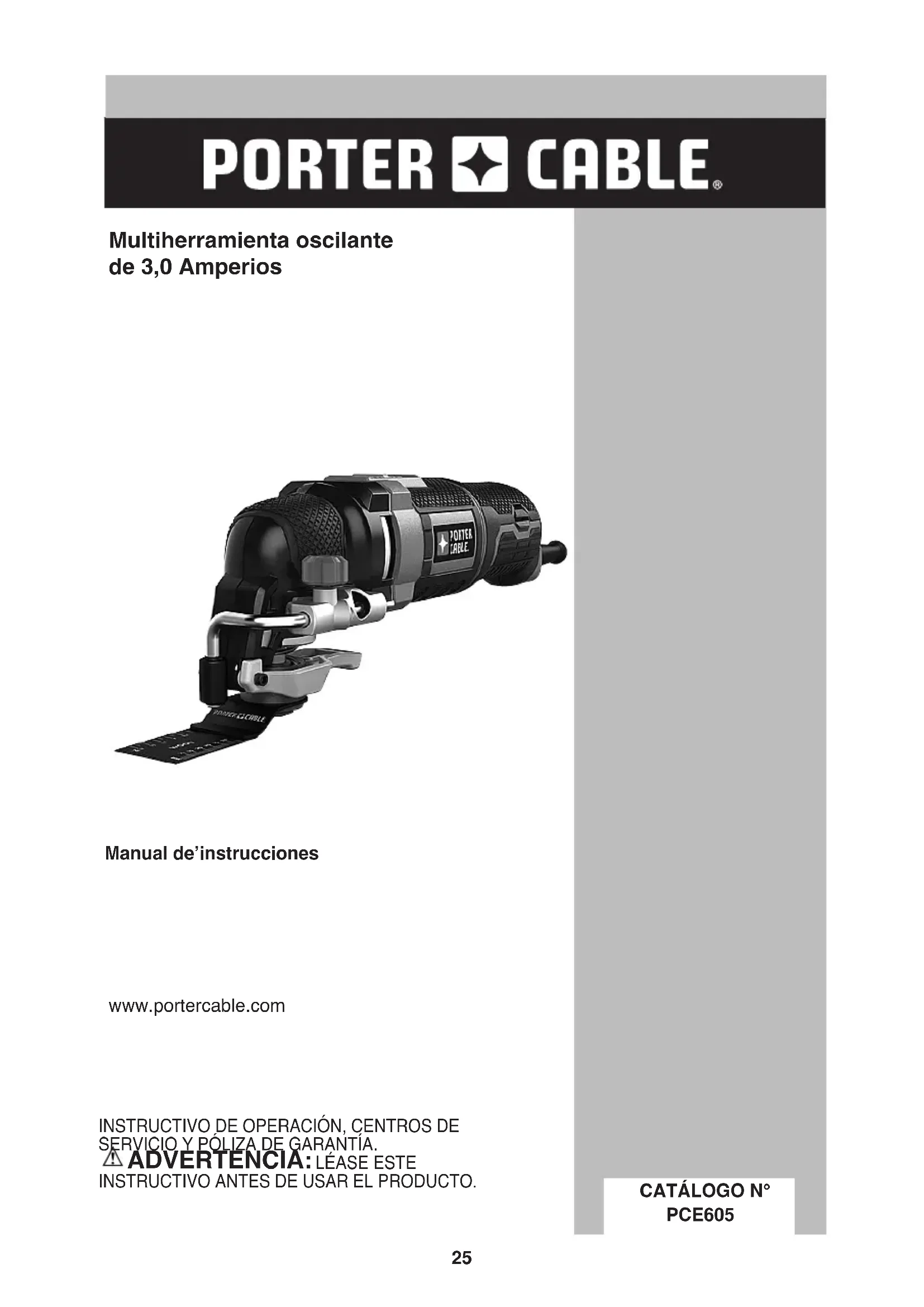 PCE605 - Herramientas multifunción Porter-Cable - Manual de uso y guía de instrucciones gratis
