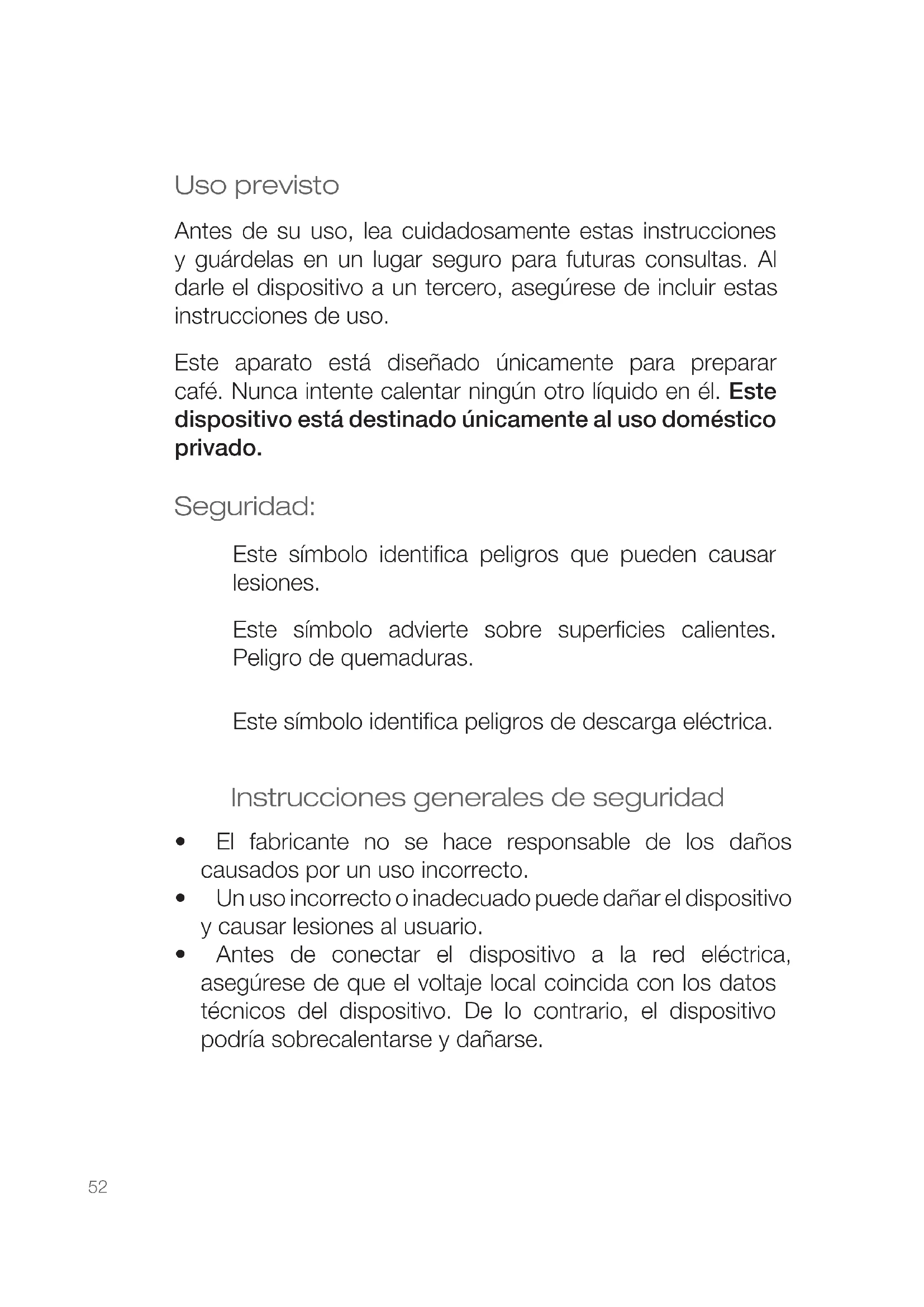 - Nunca abra la tapa del filtro o el portafiltros durante el funcionamiento, el calor se evaporará. Peligro de quemaduras graves.ESPAÑOL Manual de instrucciones