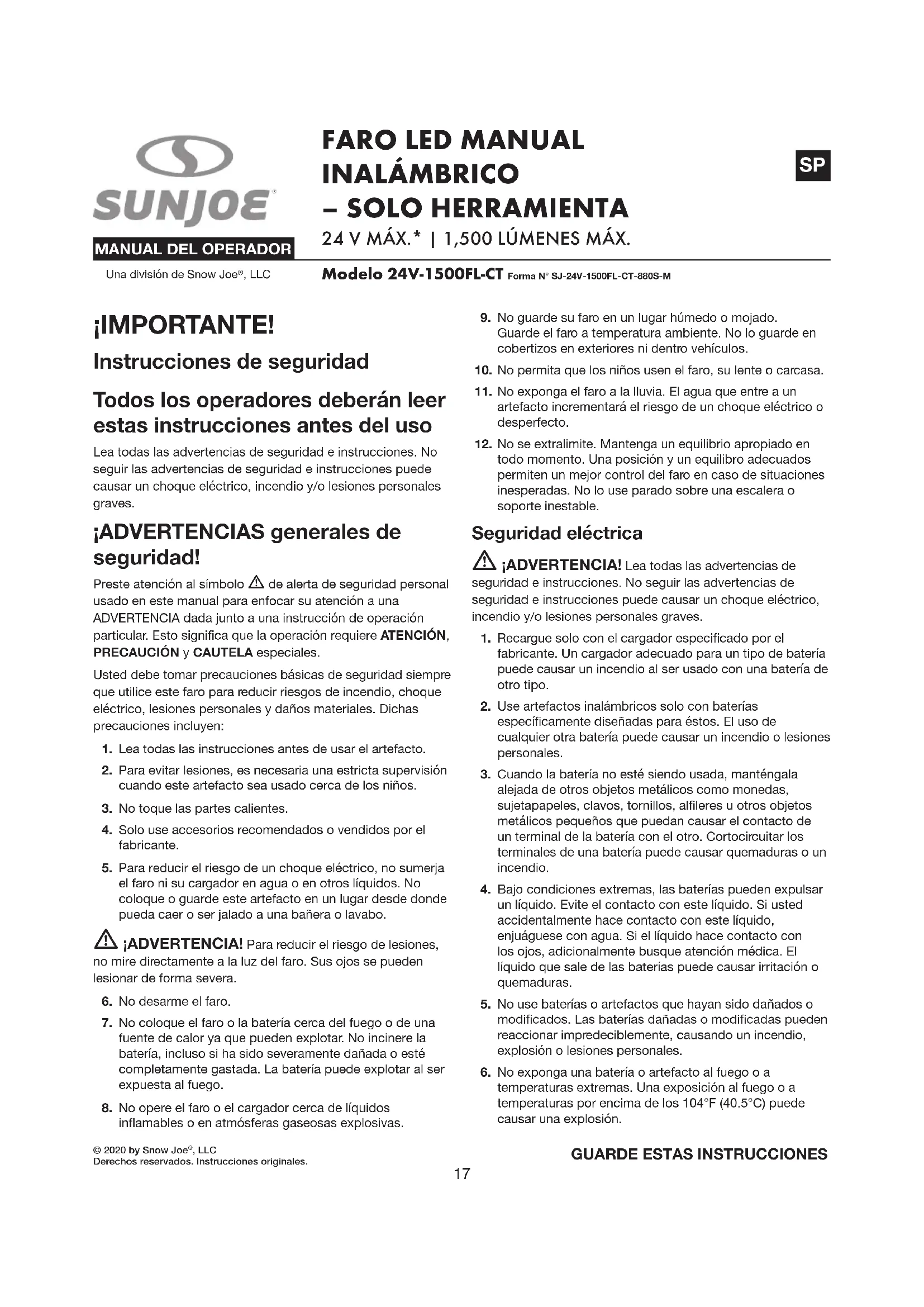 MANUAL DE USUARIO 24V1500FLCT Sun Joe