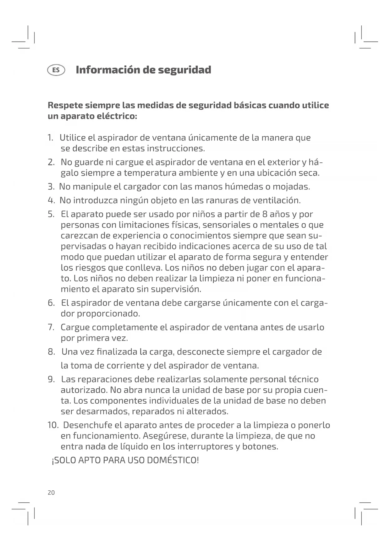 - Use este aparato únicamente para limpiar supercies húmedas y lisas, tales como ventanas, espejos y azulejos.