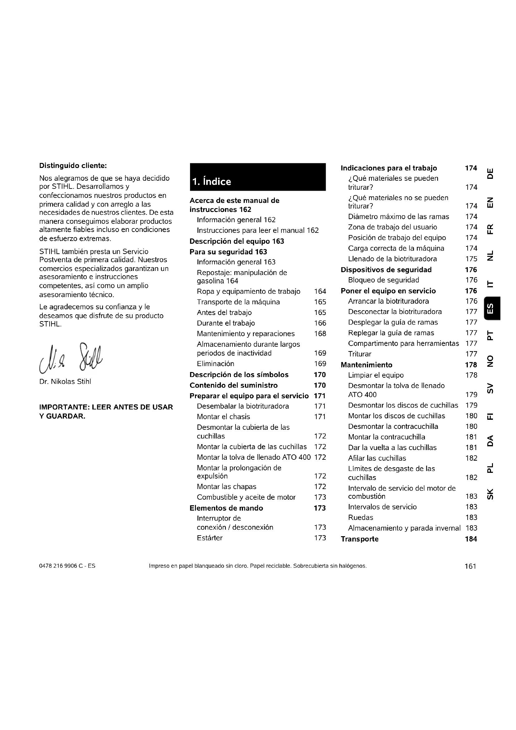 Entregue este Manual de instrucciones a su distribuidor especializzato STIHl al realizarse lavoros de mantenimiento.