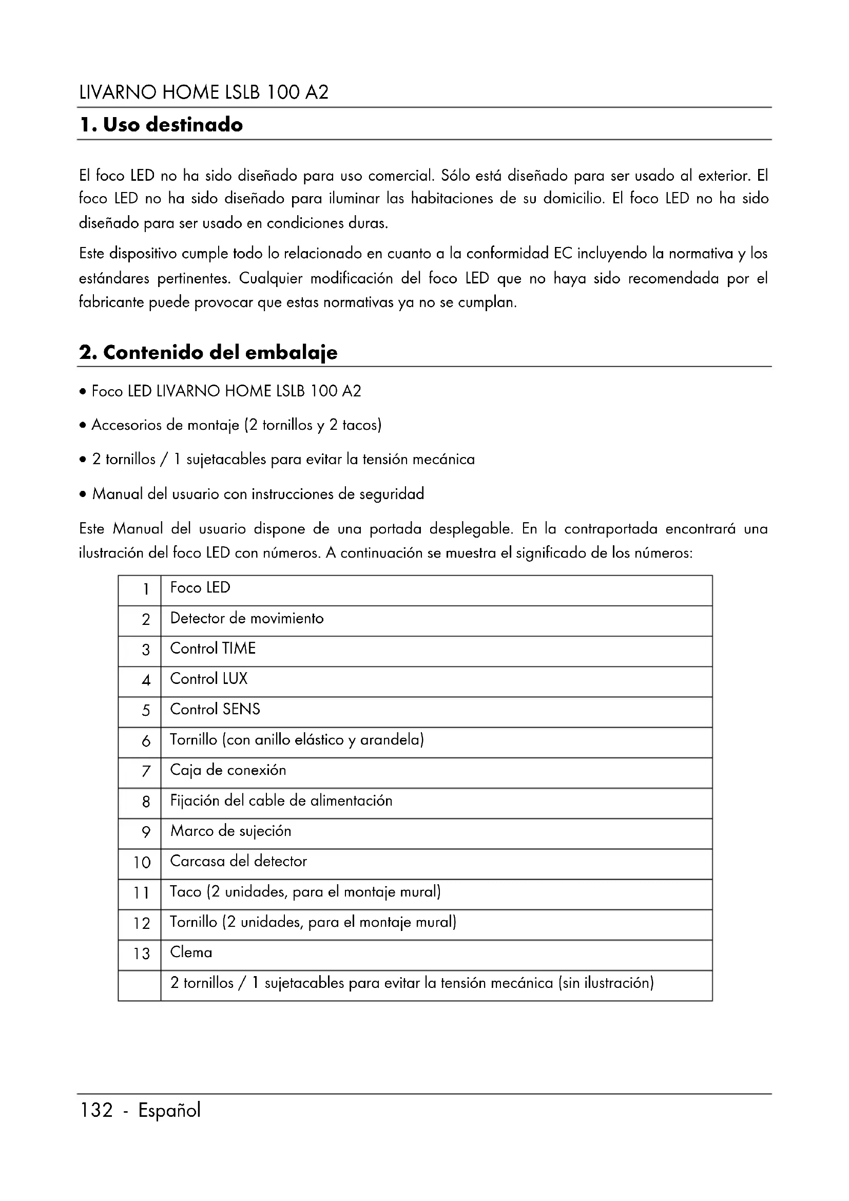 ¡Enhorabuena! Con la adquisición de este foco LED de 100 W para exterior LIVARNO HOME LSLB 100 A2, de ahora en adelante "el foco LED", ha obtenido un producto de calidad. El Manual del usuario es un componente del producto. En él encontrará información sobre la seguridad, el manejo y el desecho. Antes de emplear este producto, es necesario que se familiarice con el manual y las instrucciones de seguridad. Solo debe emplear el producto como descrito y para las aplicaciones especificadas. Si traspasa el producto a otra persona, acompáñelo siempre de la documentación pertinente.LIVARNO HOME LSLB 100 A2