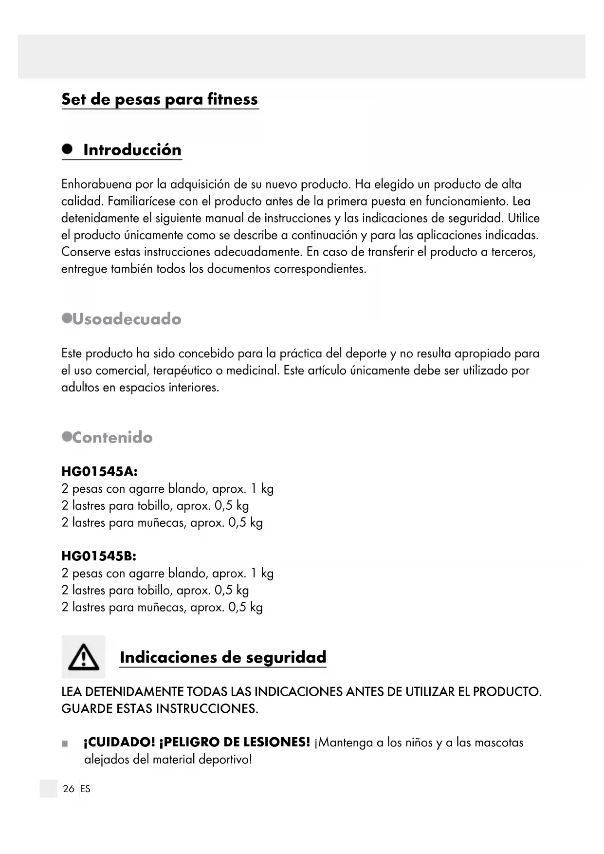 ■ iCUIDADO! iPELIGRO DE LESIONES! iMantenga a los niños y a las mascotas alejados del material deportivo!