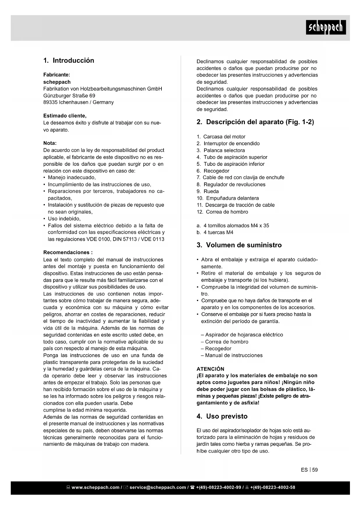 Descarga las instrucciones para tu Soplador en formato PDF gratis! Encuentra tus instrucciones LB2600E - SCHEPPACH y toma tu dispositivo electrónico nuevamente en la mano. En esta página están publicados todos los documentos necesarios para el uso de su dispositivo. LB2600E de la marca SCHEPPACH.