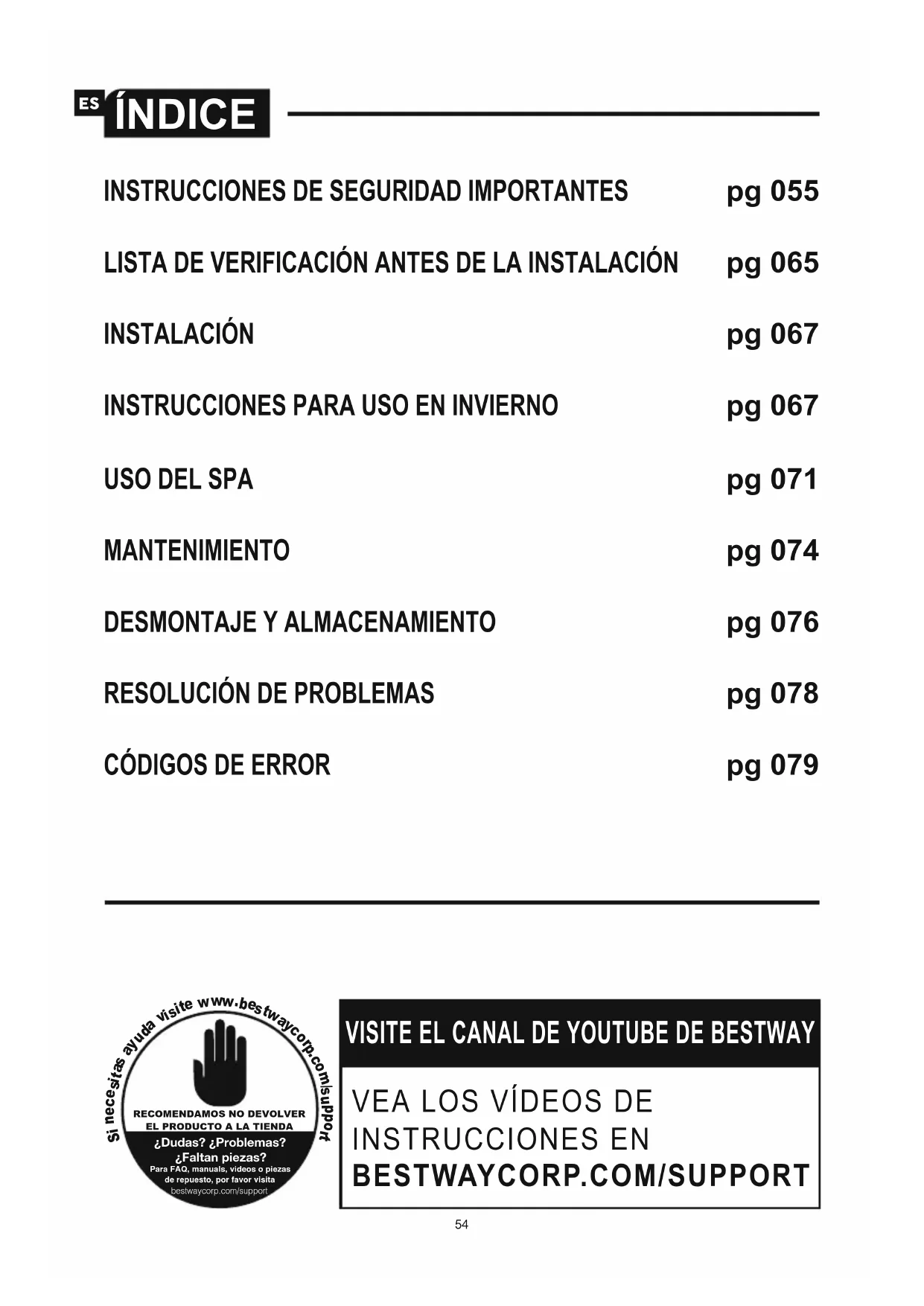 necesario. Para recibir asistencia, visite la sección de soporte de nuestro sitio web: www.bestwaycorp.com.