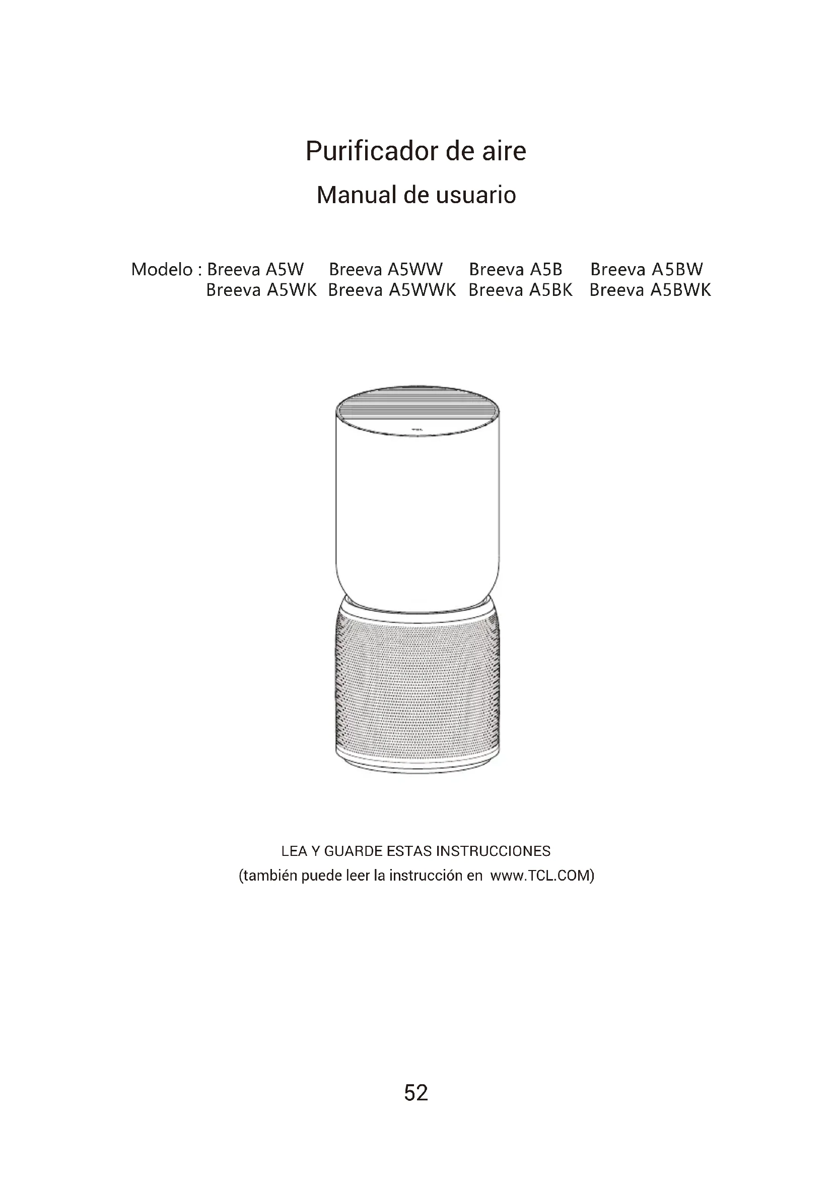 Breeva A5WWK - Purificador de aire TCL - Manual de uso y guía de instrucciones gratis