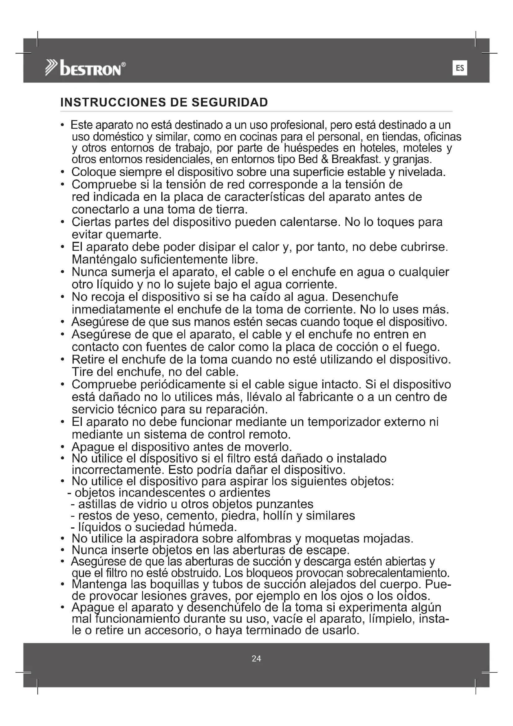 - No utilice el dispositivo para aspirar los siguientes objetos: - objetos incandescentes o ardientes - astillas de vidrio u otros objetos punzantes - restos de yeso, cemento, piedra, hollín y similares - líquidos o suciedad húmeda.