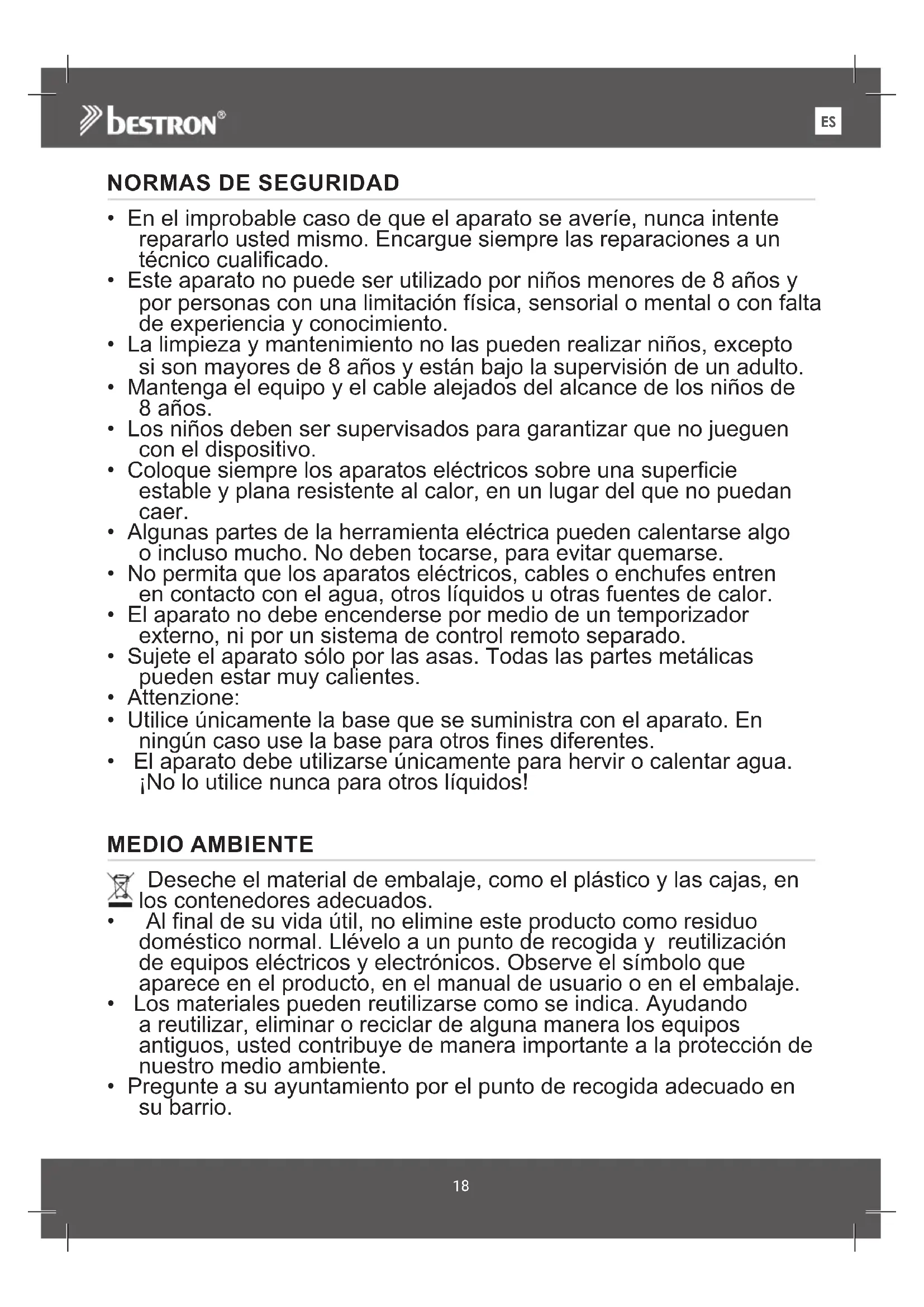 Encuentra gratis el manual del aparato AATM800STE BESTRON en formato PDF.