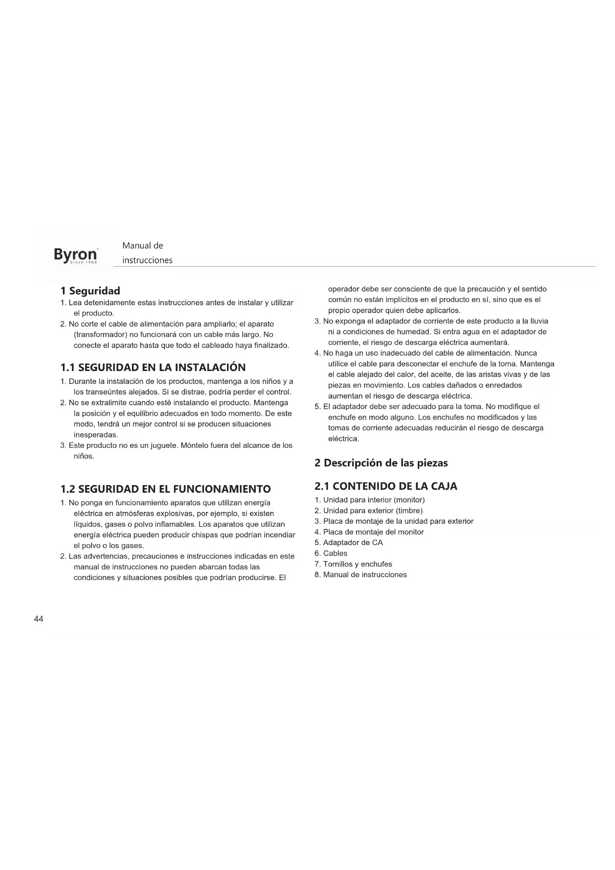 DIC24712 - Intercomunicador BYRON - Manual de uso y guía de instrucciones gratis
