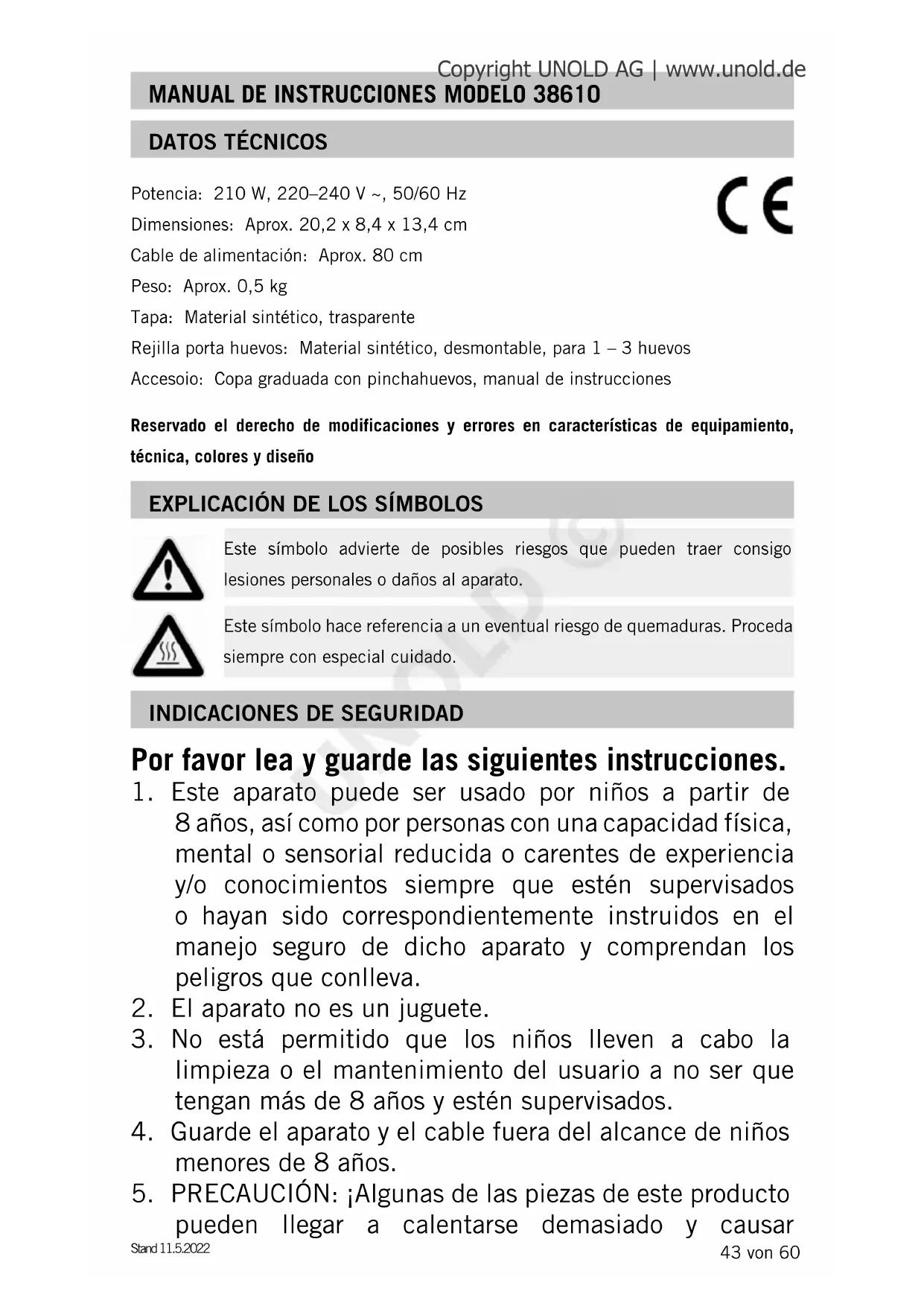 MANUAL DE USUARIO Mini 38610 UNOLD