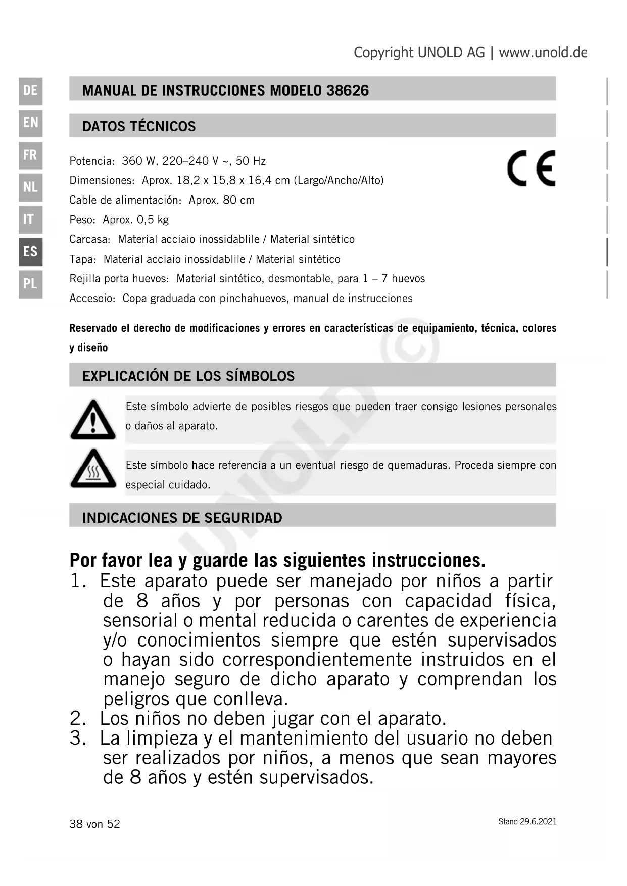 MANUAL DE USUARIO Edel 38626 UNOLD