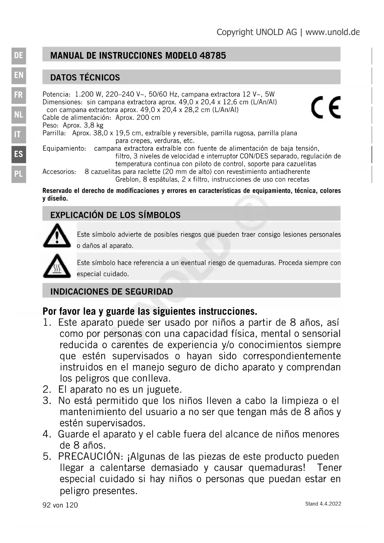 Smokeless 48785 - Placa de parrilla UNOLD - Manual de uso y guía de instrucciones gratis