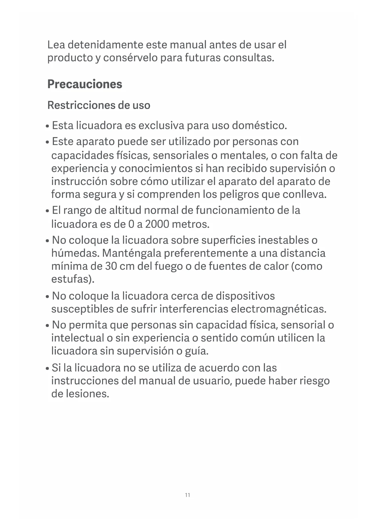 - No permita que personas sin capacidad sica, sensorial o intelectual o sin experiencia o sentido común utilicen la licuadora sin supervisión o guía.