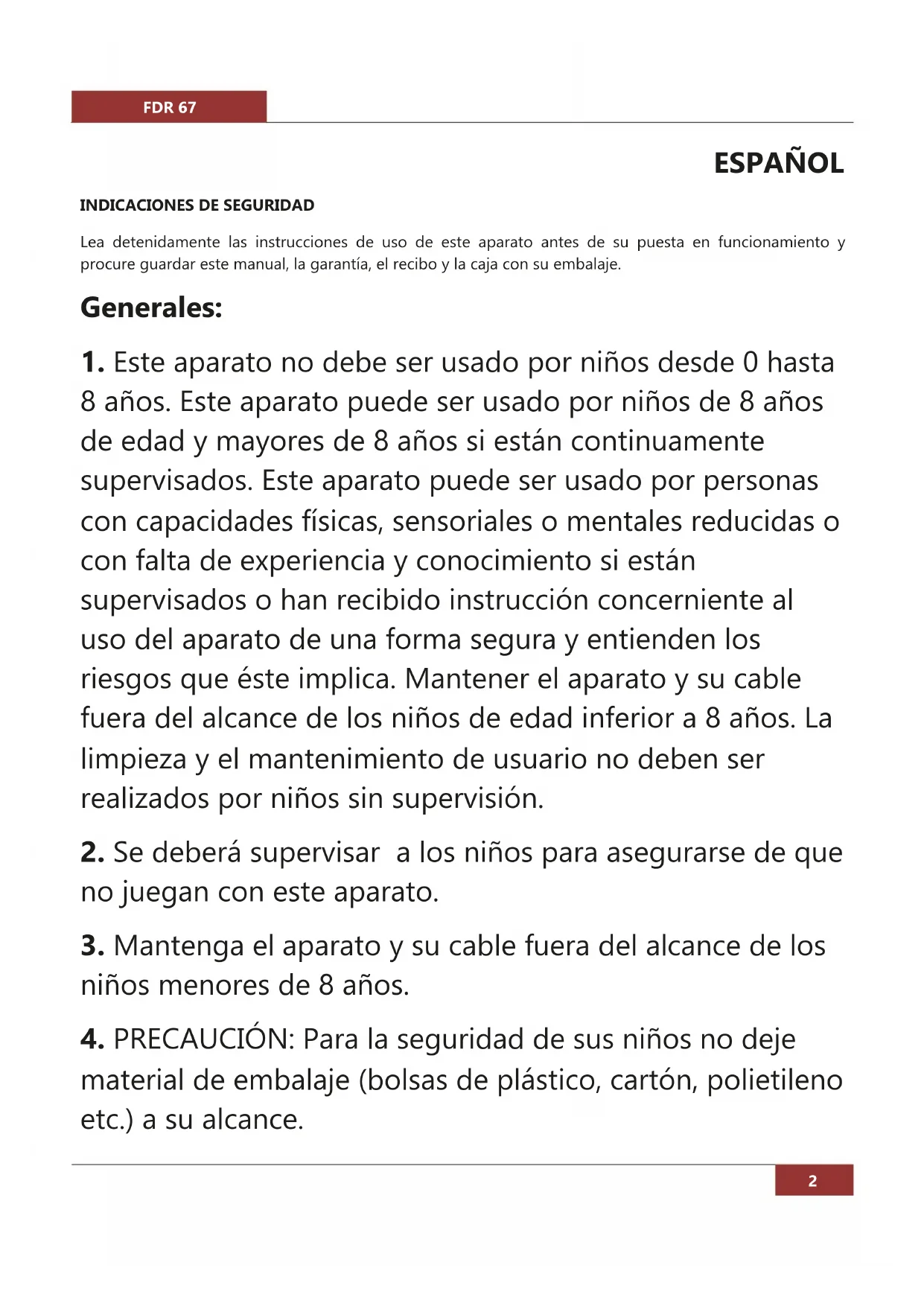 MANUAL DE USUARIO FDR 67 Orbegozo