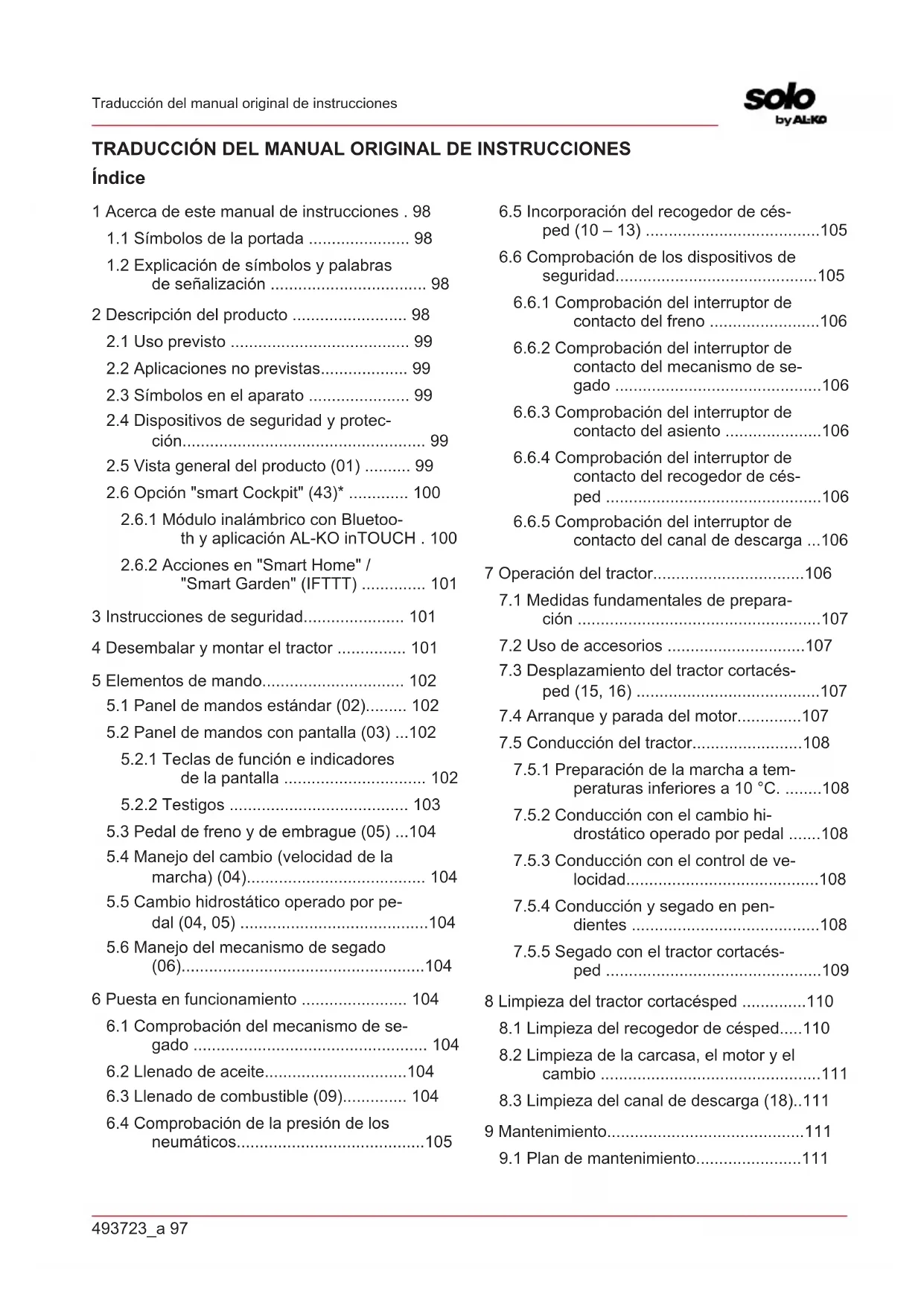 ped ...............................................109 8 Limpieza del tractor cortacésped ..............110