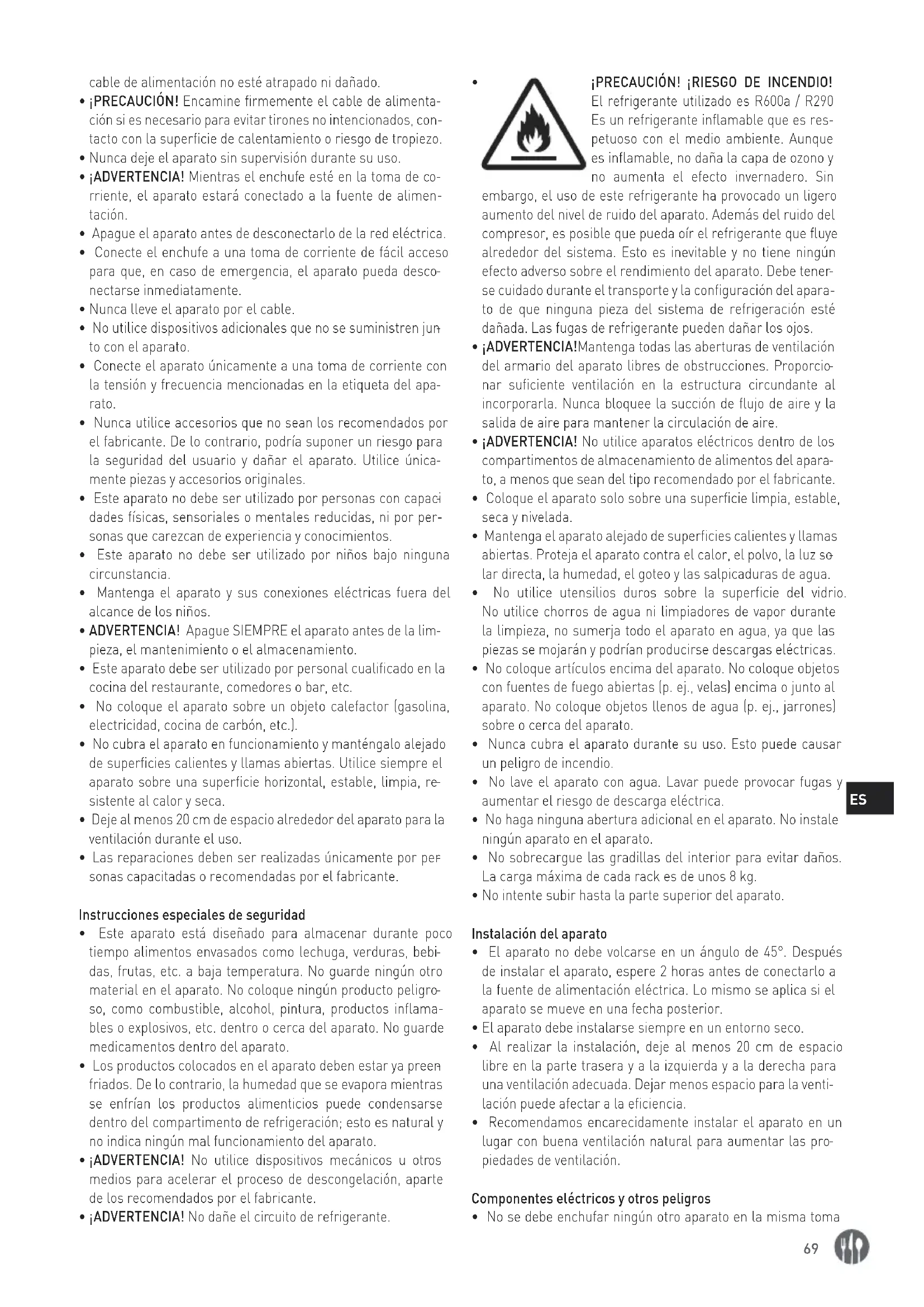 ¡PRECAUCIÓN! ¡RIESGO DE INCENDIO! El refrigerante utilizado es R600a / R290 Es un refrigerante inflamable que es res