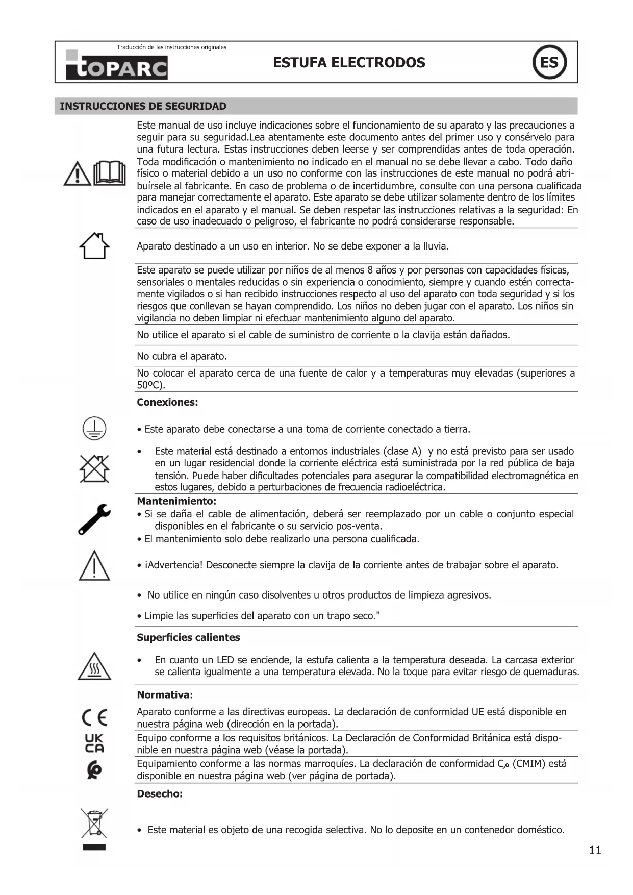 Equipamente conforme a las normas marroquies. Ladeclaracion de conformidad C_ (CMIM) está disponible en nuestra pagea web (ver pagea de portada).