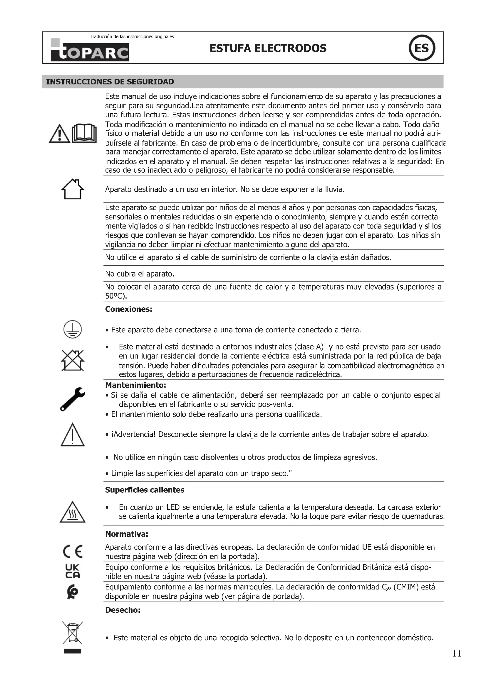 Traducción de las instrucciones originales12 ESTUFA ELECTRODOS