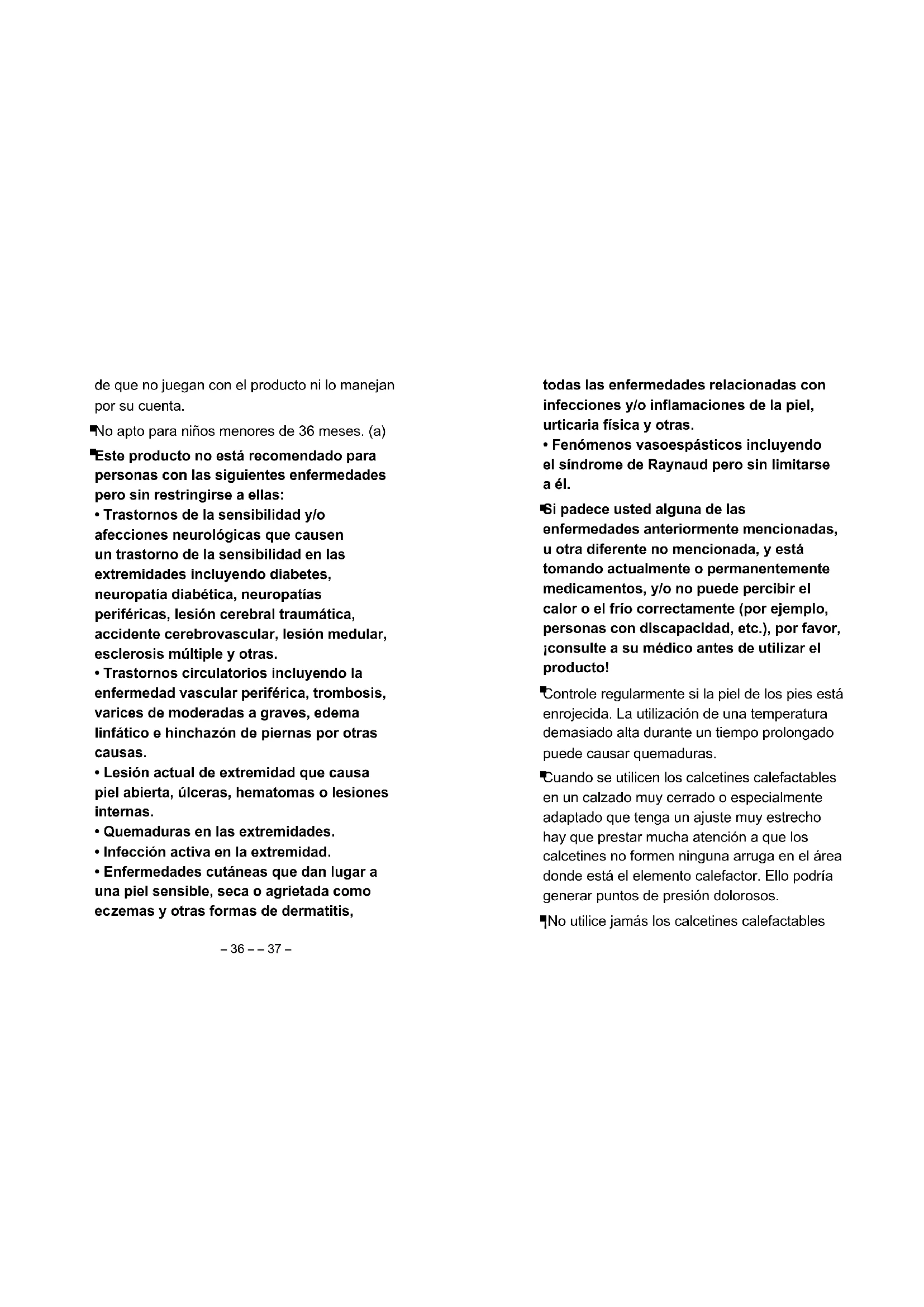 Si padece usted alguna de las enfermedades anteriormente mencionadas, u otra diferente no mencionada, y está tomando actualmente o permanentemente medicamentos, y/o no puede percibir el calor o el frío correctamente (por ejemplo, personas con discapacidad, etc.), por favor, ¡consulte a su médico antes de utilizar el producto!