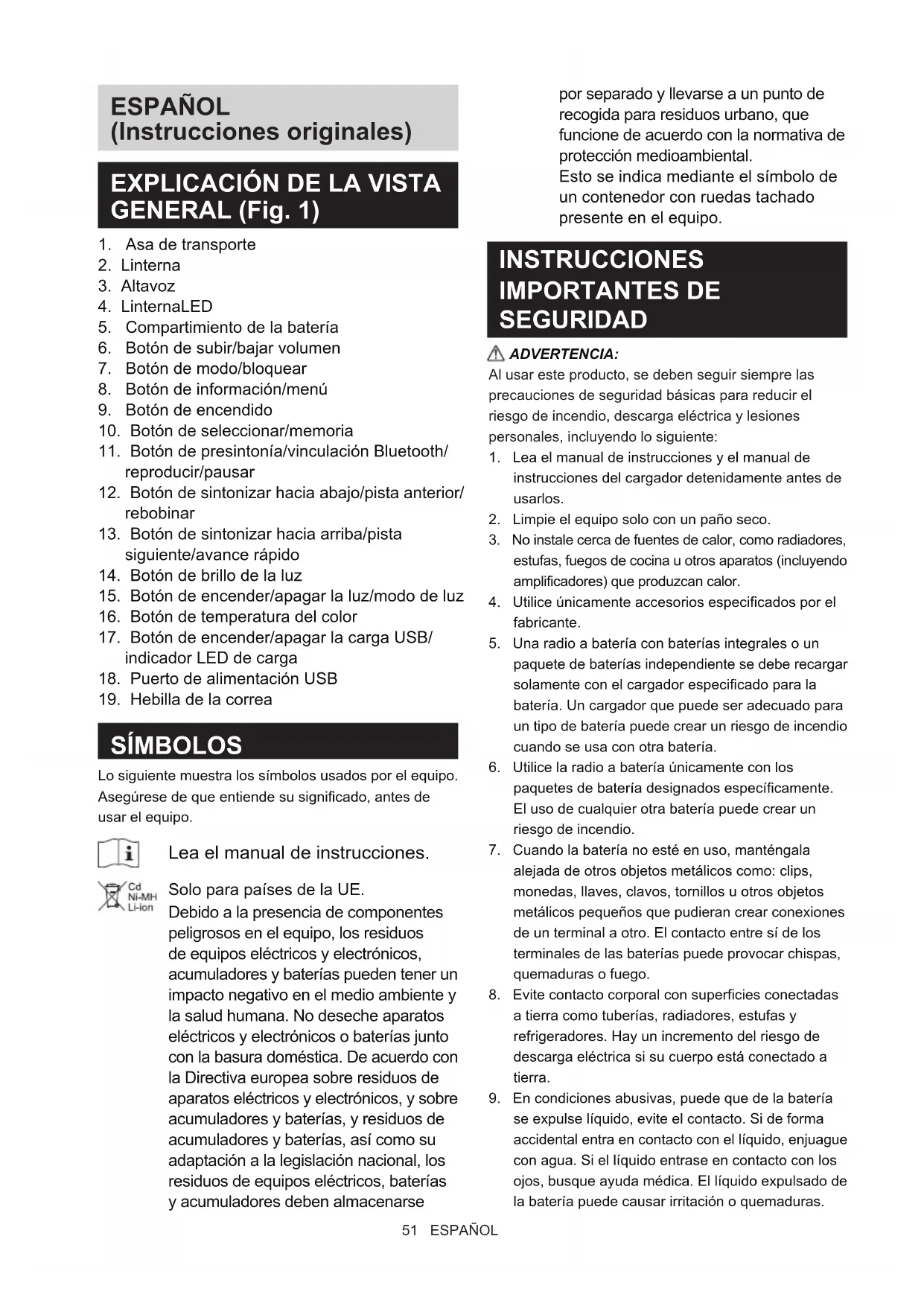 Radio con Linterna Inalámbrico Manual de instrucciones 51
