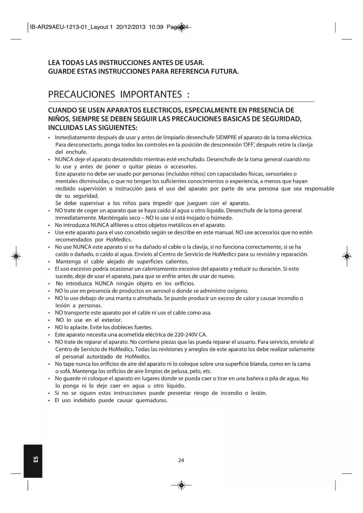AR29EU - Purificador de aire HOMEDICS - Manual de uso y guía de instrucciones gratis