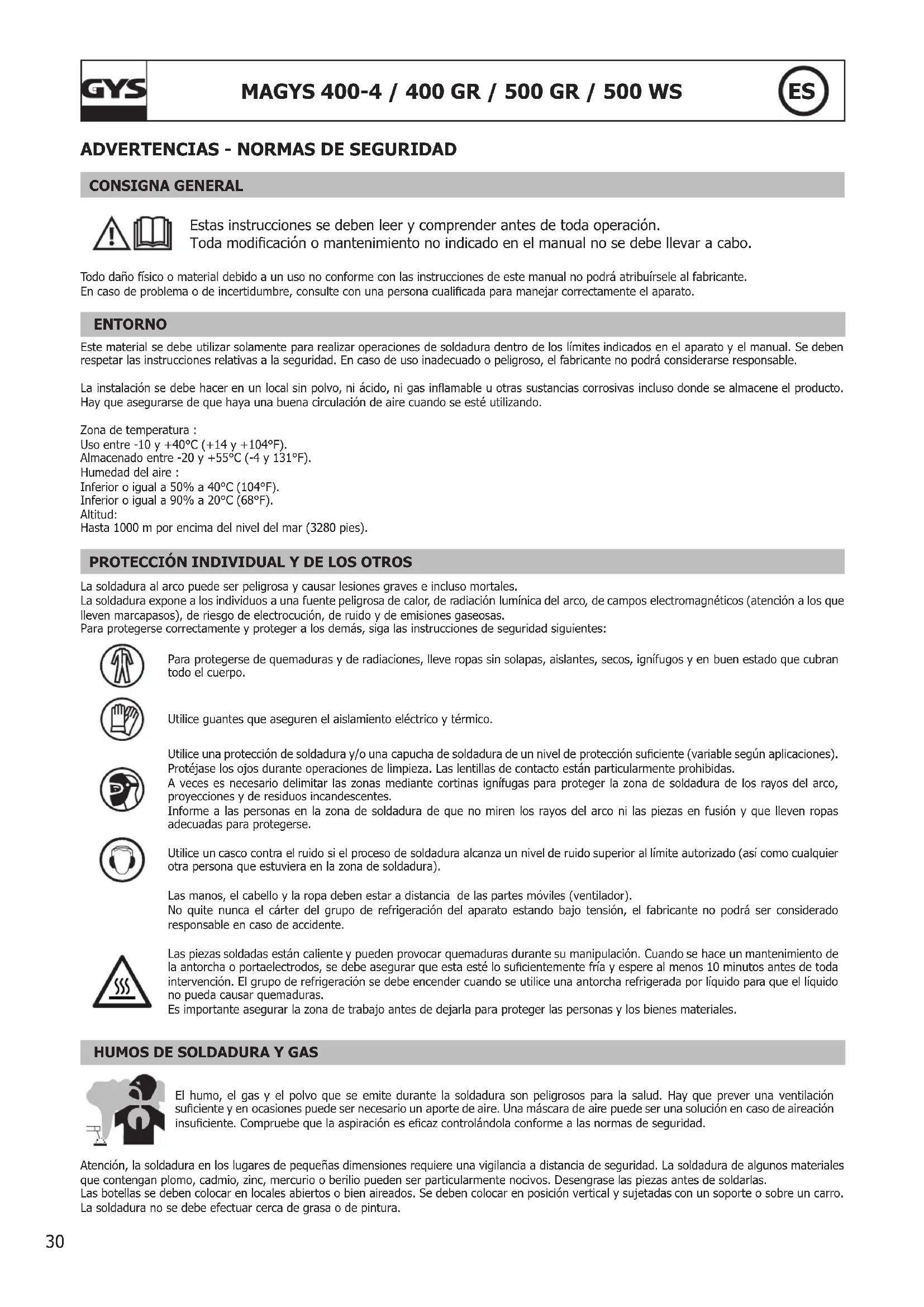 Magys 500 WS - Máquina de soldar GYS - Manual de uso y guía de instrucciones gratis