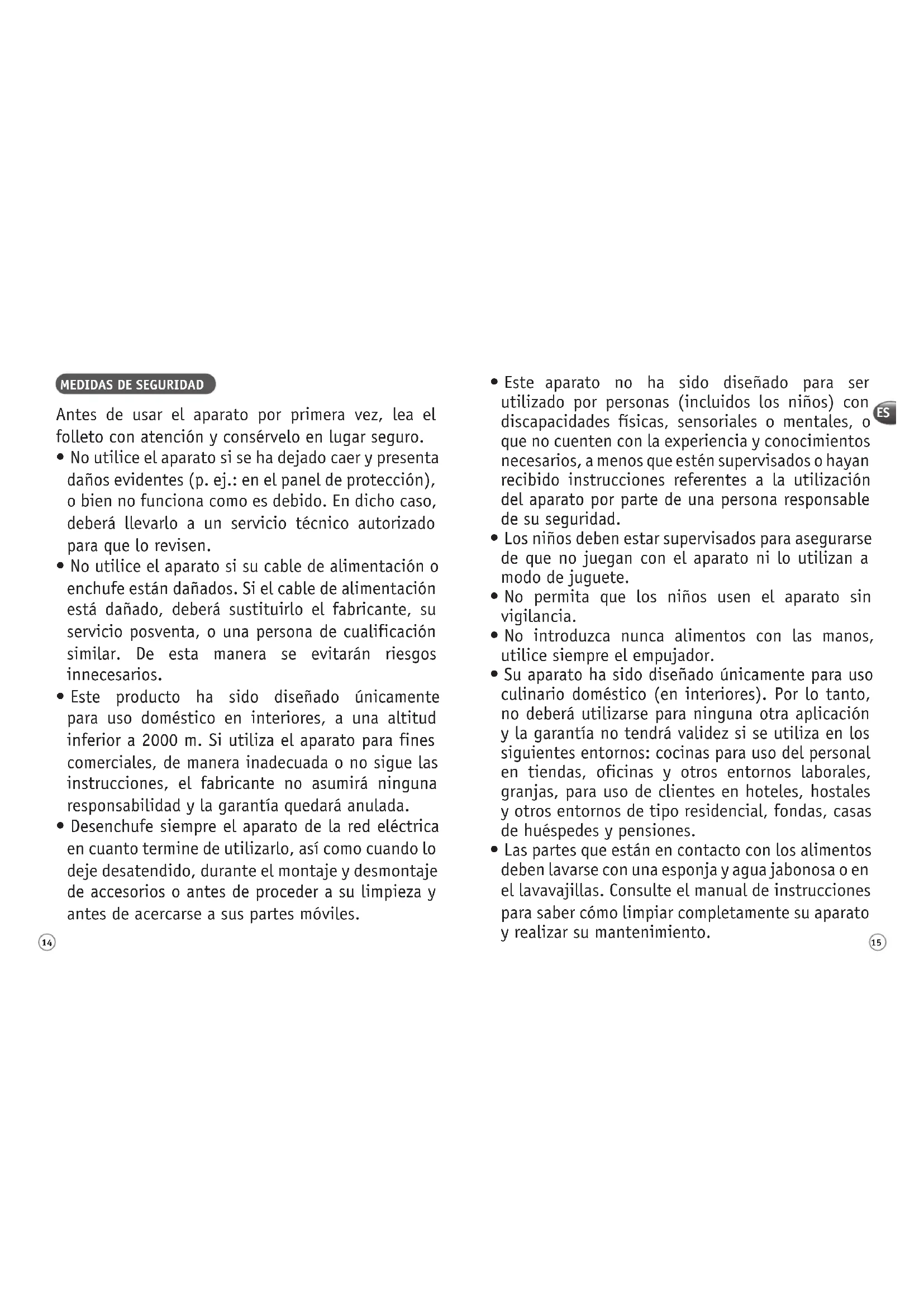 - Este aparato no ha sido diseñado para ser utilizado por personas (incluidos los niños) con discapacidades físicas, sensoriales o mentales, o que no cuenten con la experiencia y conocimientos necesarios, a menos que estén supervisados o hayan recibido instrucciones referentes a la utilización del aparato por parte de una persona responsable de su seguridad.