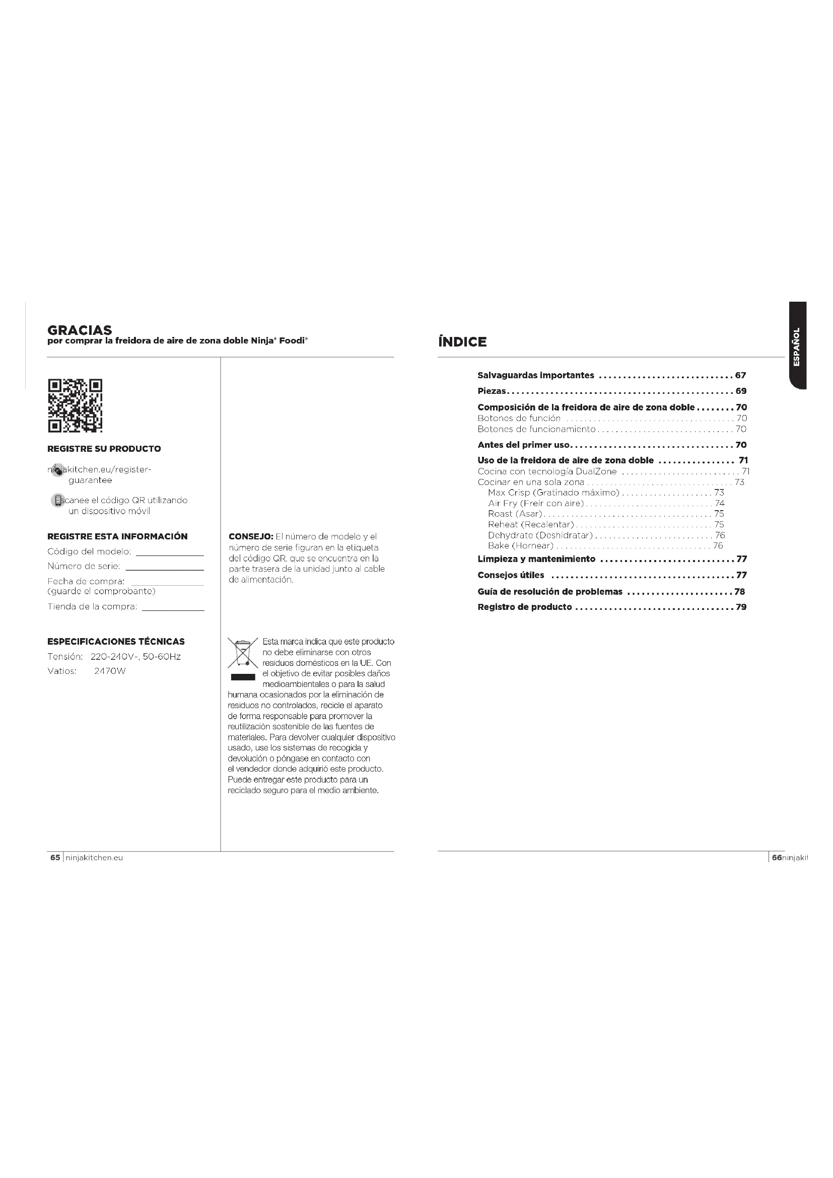 Ninja no diseña sus productos para que durén solo un tiempo limitado. Somos conscientes de que los clients quizásDSLan reparar sus electrodomesticos de casa una vez que haya vencido la garantía. Puede encontrar Assistance en linea en www.nijakitchen.eu.
