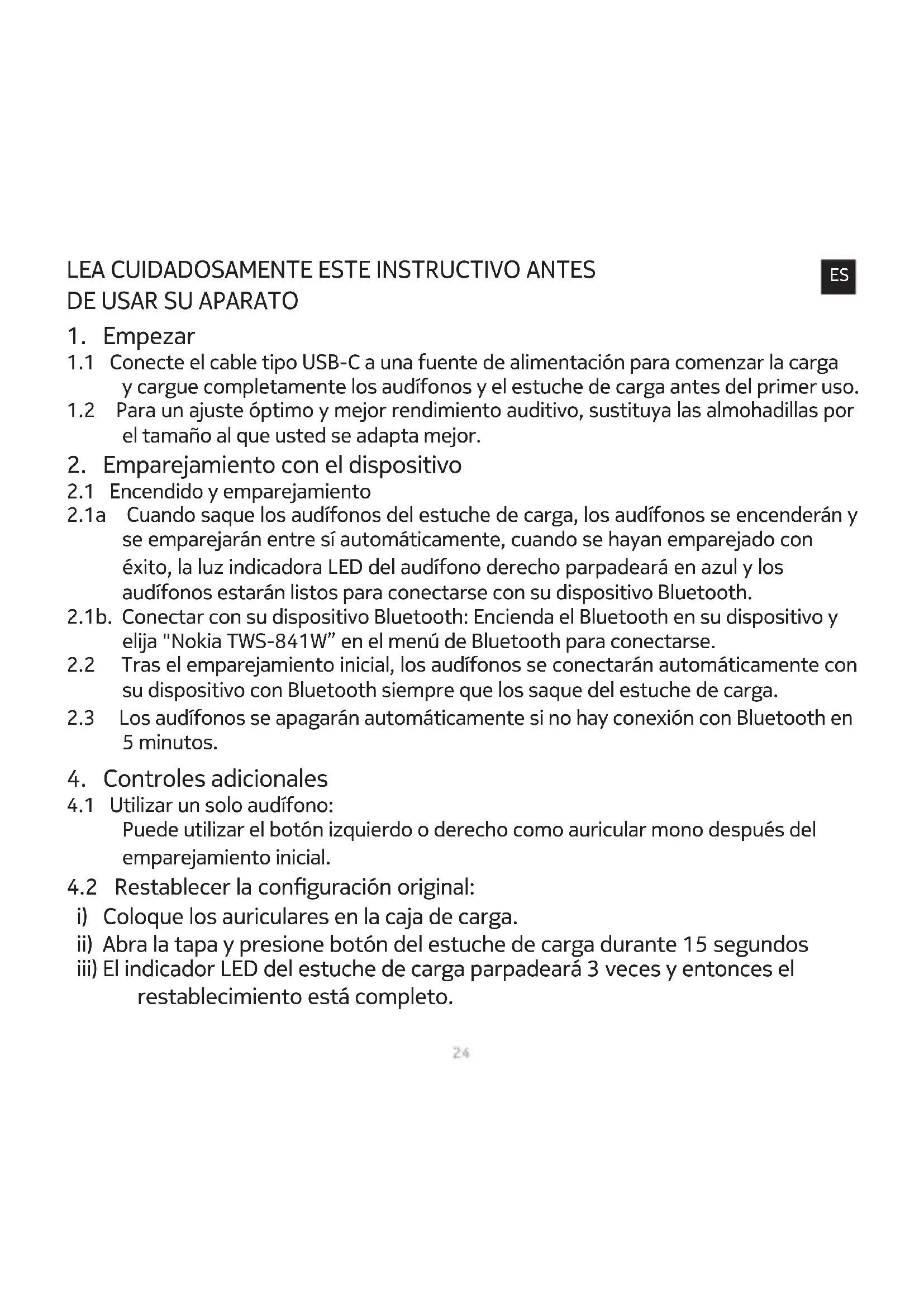MANUAL DE USUARIO Clarity Earbuds Pro TWS841W NOKIA