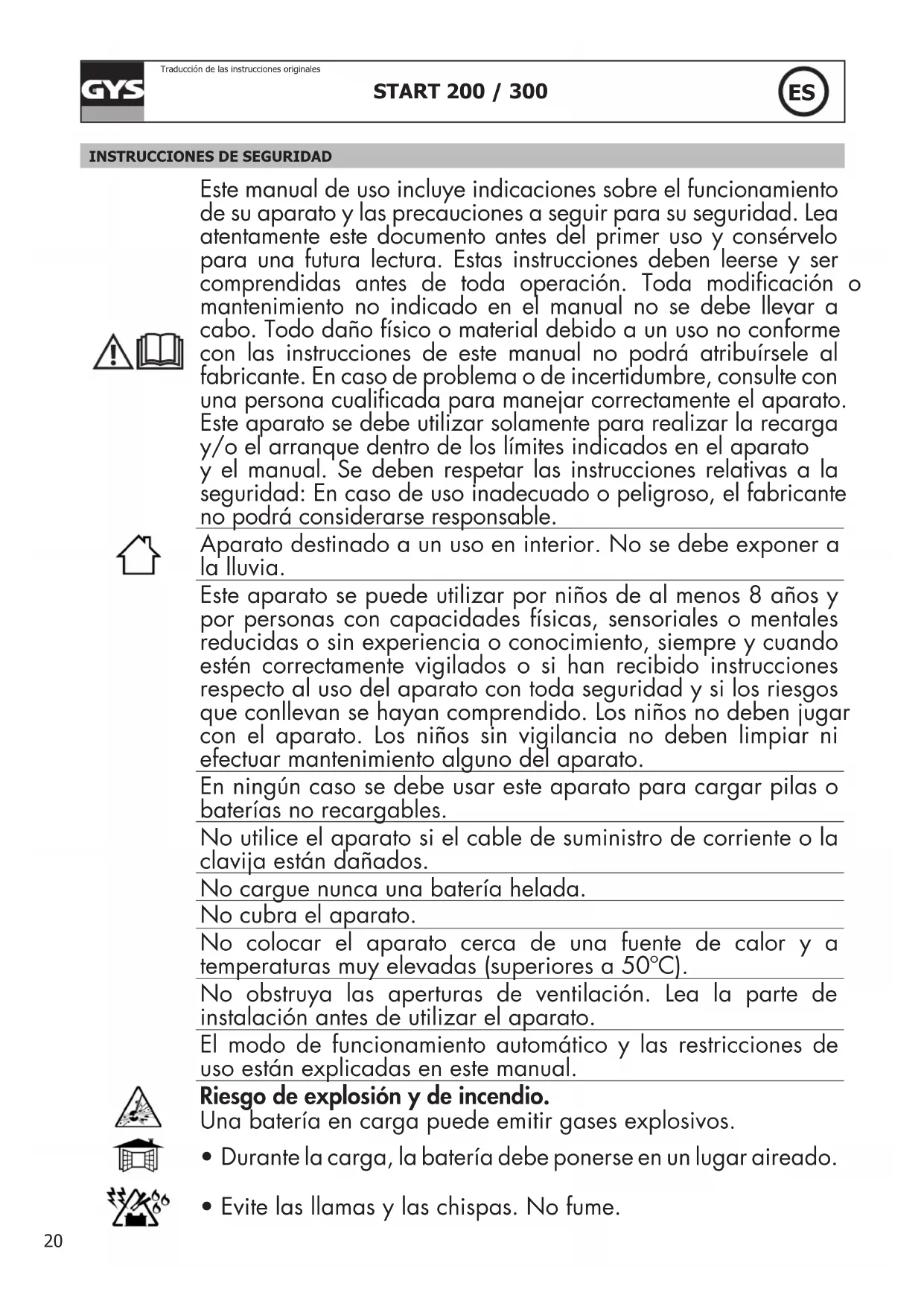 - Evite las llamas y las chispas. No fume.START 200 / 300